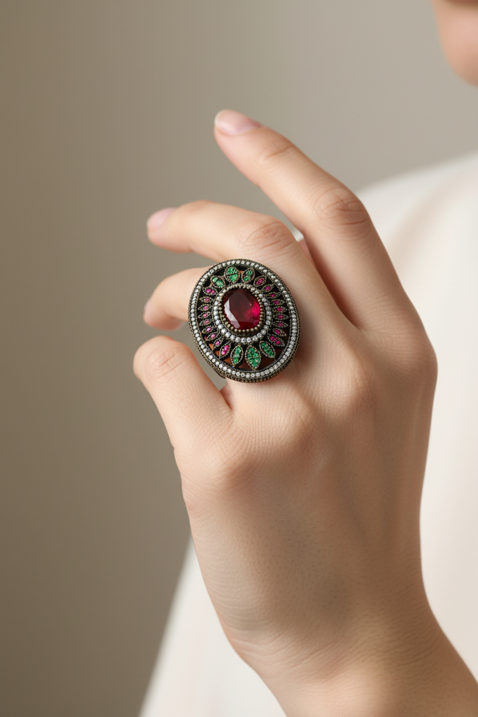 100% pure and authentic 925 silver ring studded with precious zircons & stones.