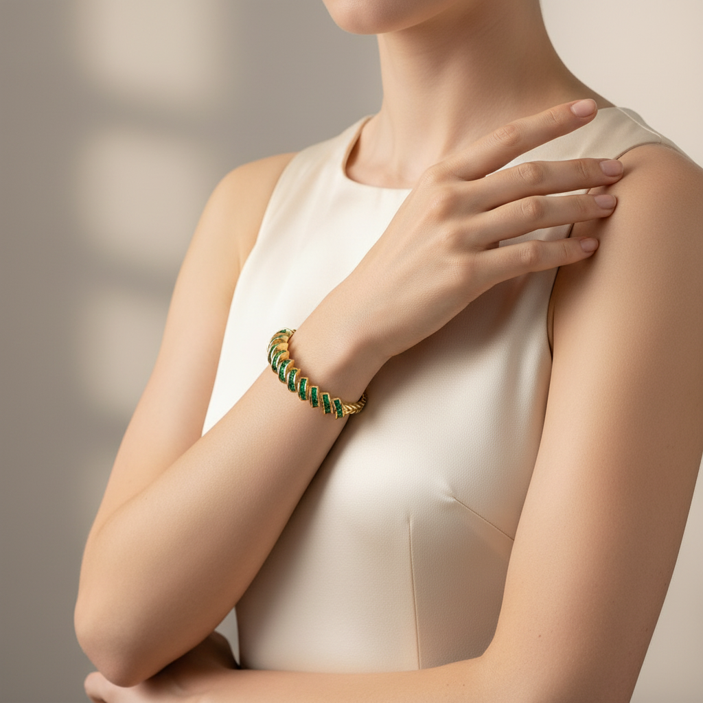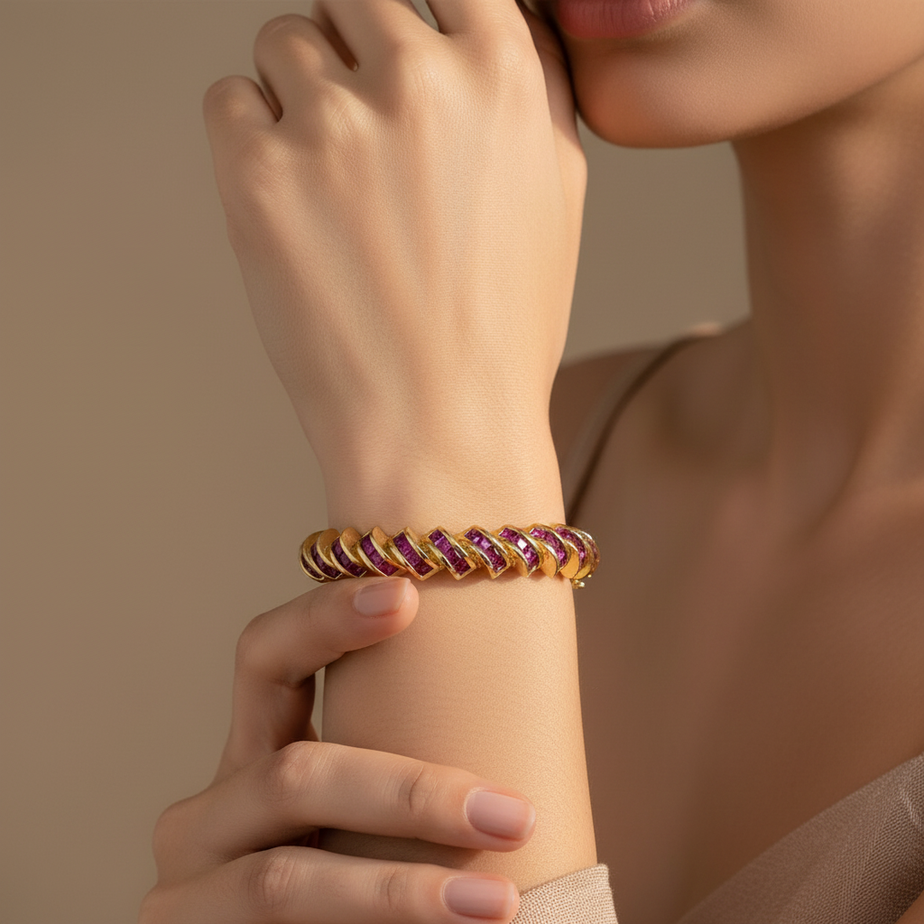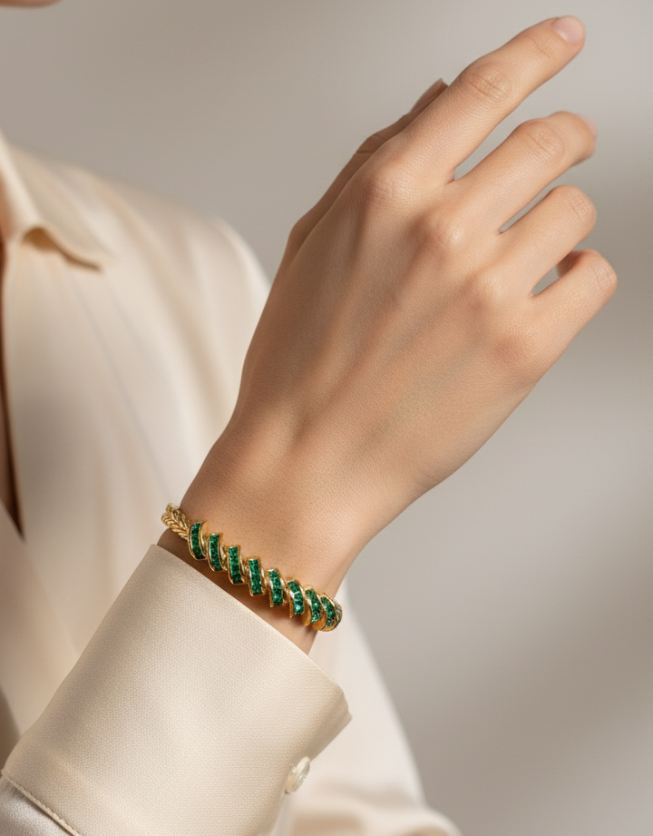 22k gold plated very elegant open able bangle studded with real tapered stones. Premium quality bangle šŸ‘Œ