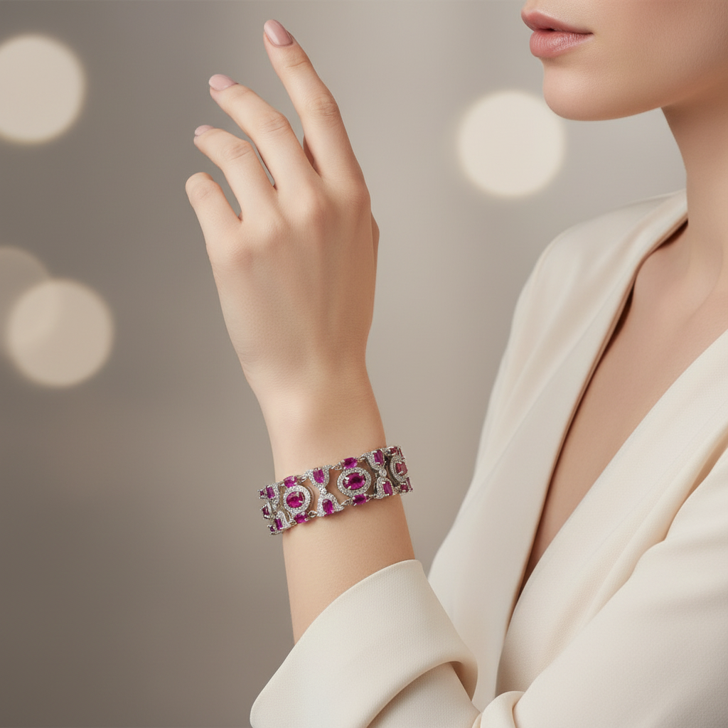 High Quality Rhodium Plated loose bracelet studded with real precious micro zircons and real stones. Premium quality👌