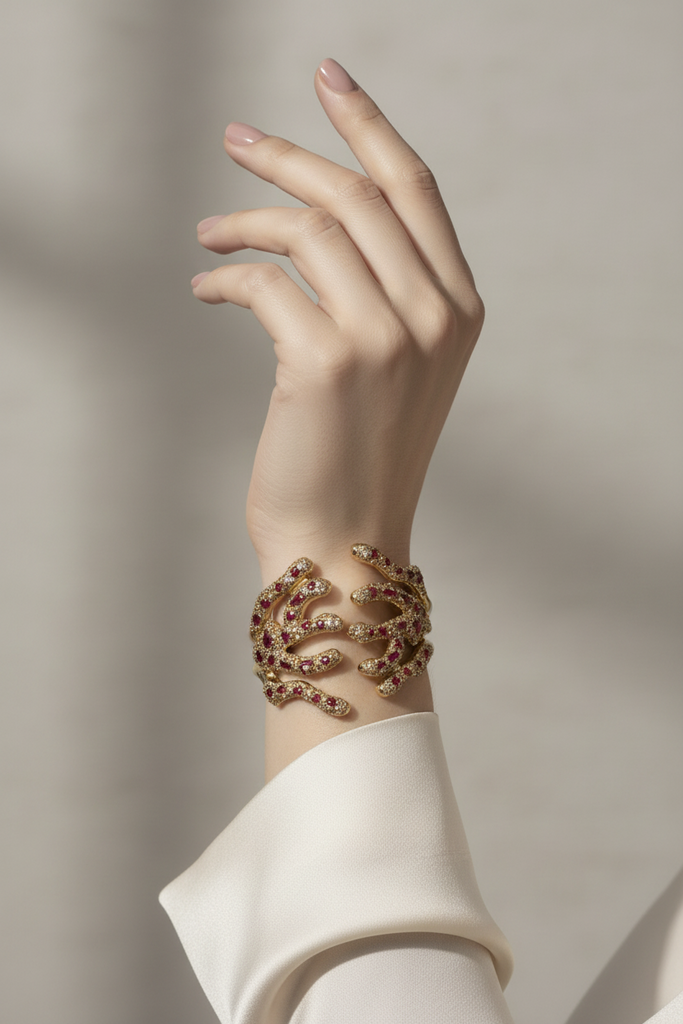 High Quality Gold plated very beautiful open able Turkish🇹🇷 Bangle studded with real precious stones and real Swarovski stones. Premium quality👌