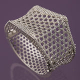 High quality rhodium plated diamond design openable bangle studded with precious micro zircons.