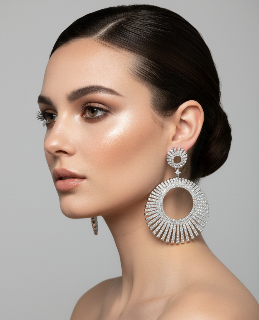 High quality gold +  rhodium plated earrings studded with precious micro zircons.