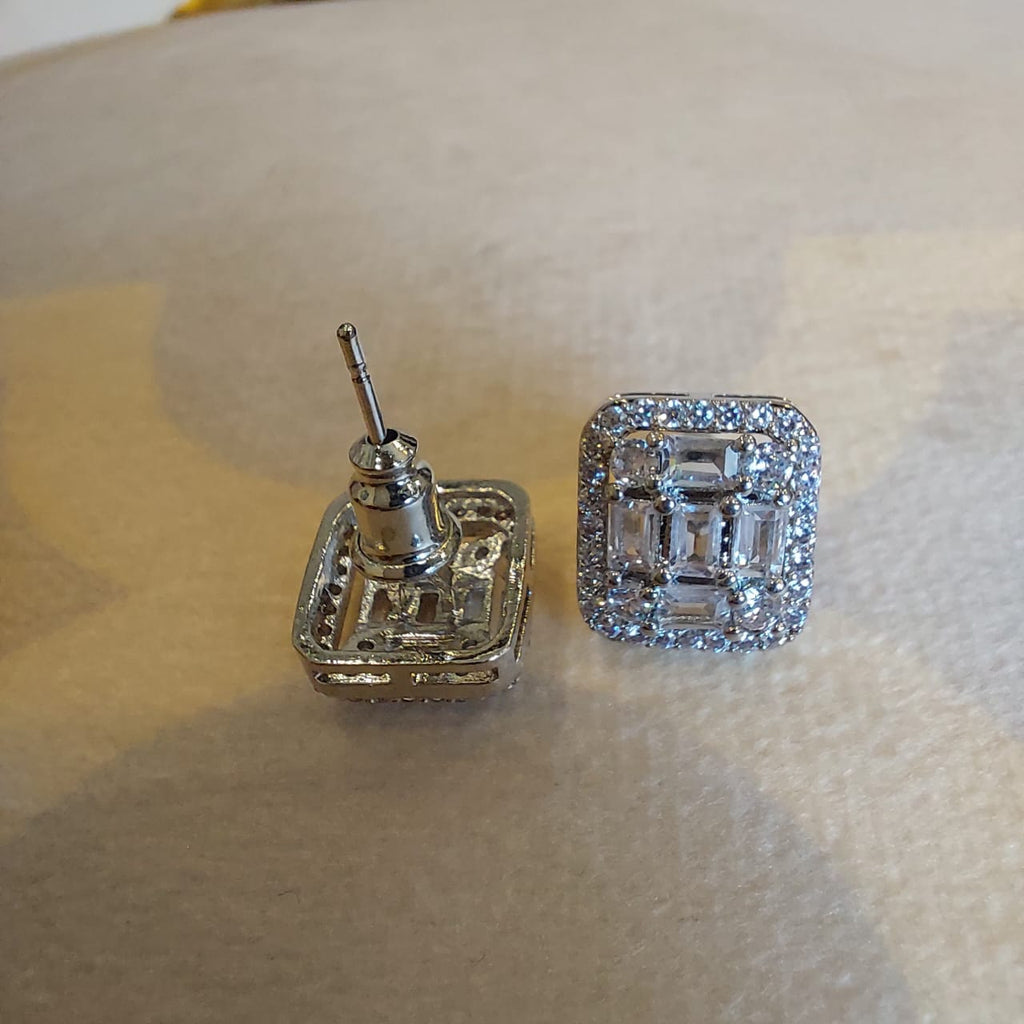 High quality rodhium plated very elegant diamond look ear studs studded with precious micro zircons. Premium quality 👌