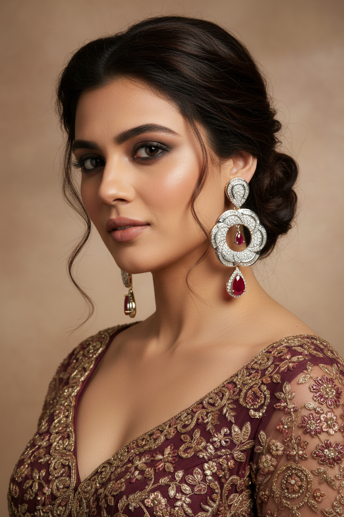 High quality gold + rhodium plated earrings studded with precious zircons and real pearls.