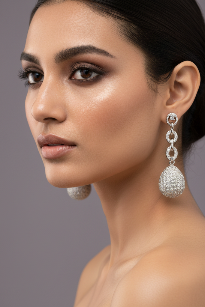 High quality rhodium plated earrings studded with precious micro zircons.