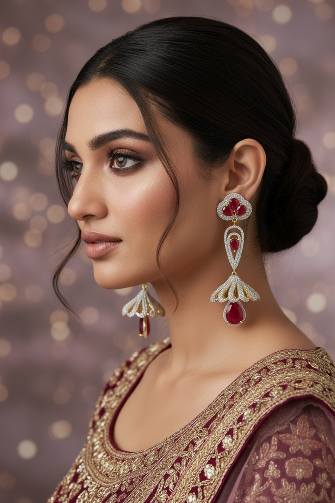 High quality gold + rhodium plated earrings studded with precious micro zircons and real stones.