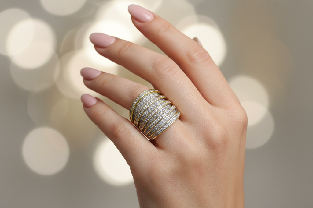 High quality rhodium plated imported ring studded with finest micro zircons.