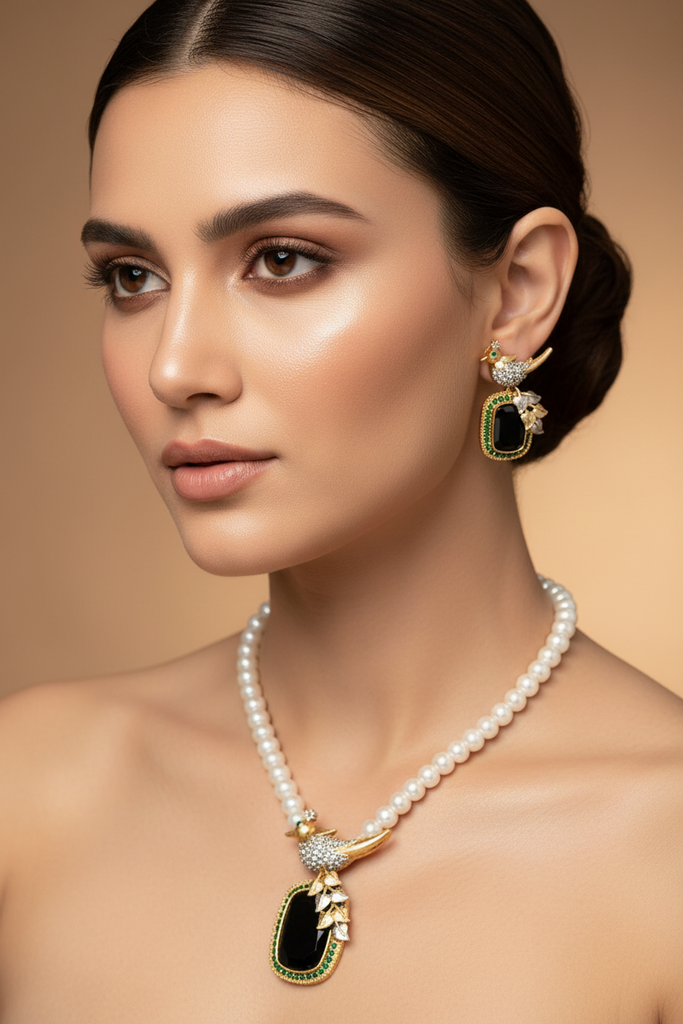 Gold and rhodium plated very beautiful hand made pendant set studded with real precious zircons and real stones.