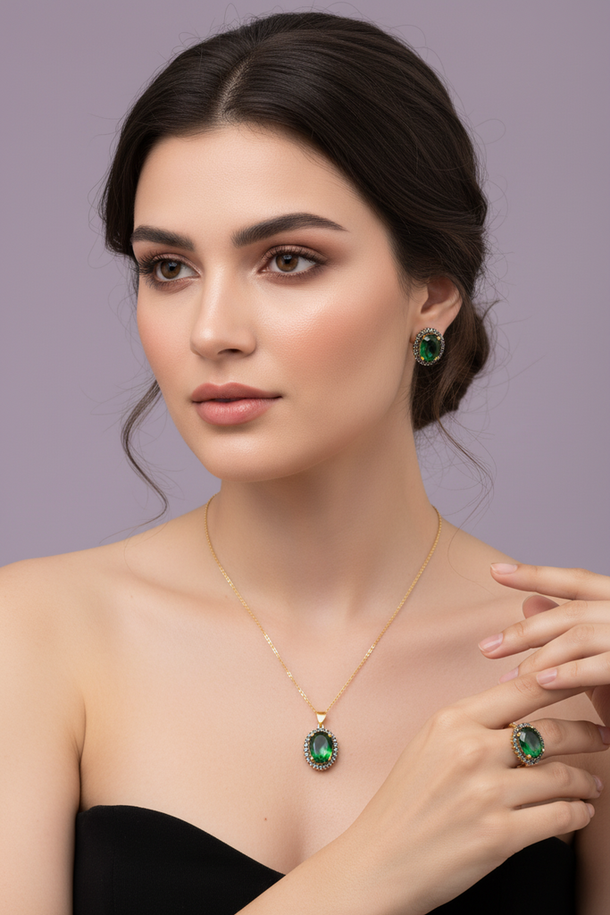 Set Includes: Pendant, Earrings, Ring (Adjustable)