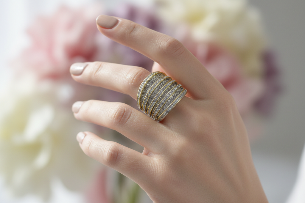 High quality rhodium plated imported ring studded with finest micro zircons.