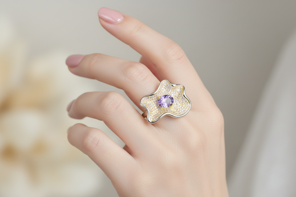 100% pure and authentic 925 silver ring studded with precious zircons and stones.