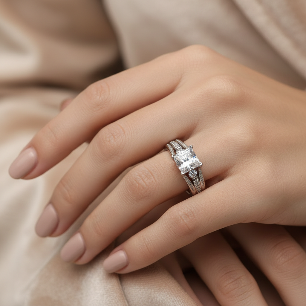 22k gold plated and rodhium premium quality ring studded with real precious zircons and real stones