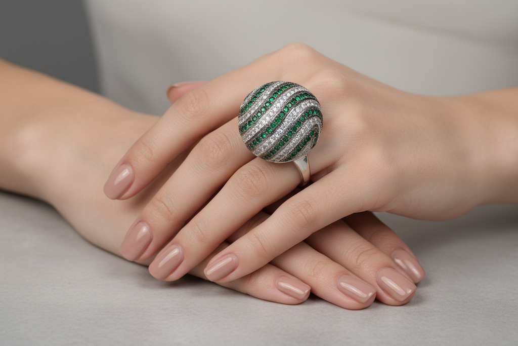 Two Tone (White & Black) rhodium plated elegant ring studded with finest micro zircons and real stones