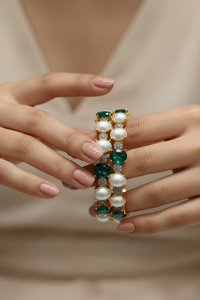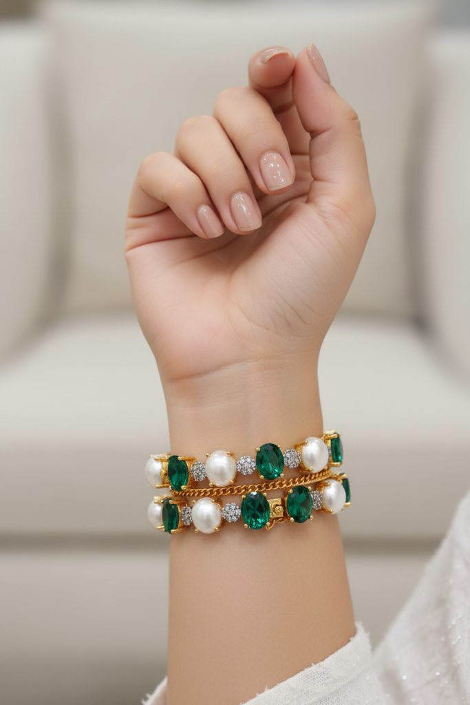 22k Gold and rodhium plated diamond design openable signature bangles studded with real precious zircons and real stones. Premium quality