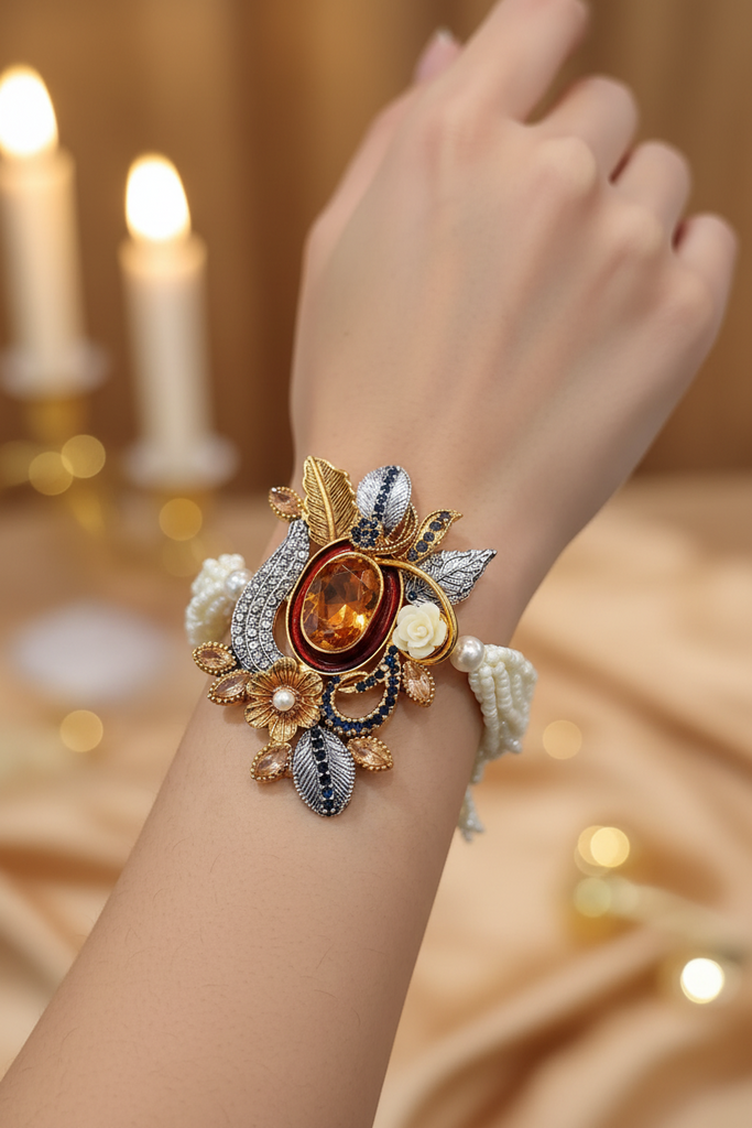 Gold+ Rodhium plated totally handmade traditional bracelets studded with real precious zircons, stones and real beads❤️
