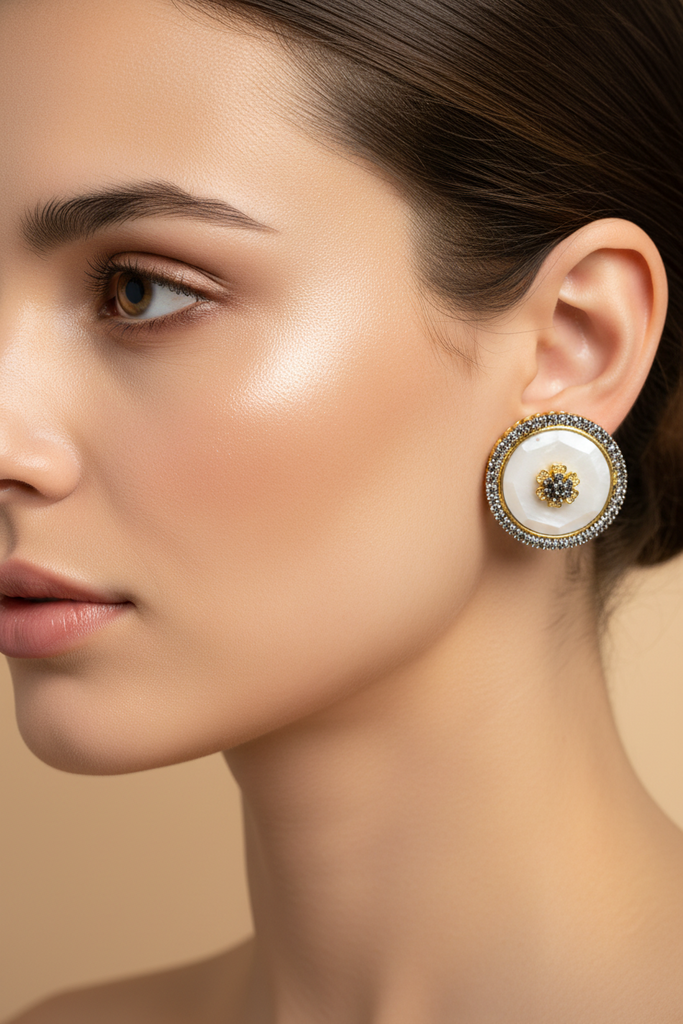 22k gold + rhodium plated high quality ear studs studded with precious stones and real stones.