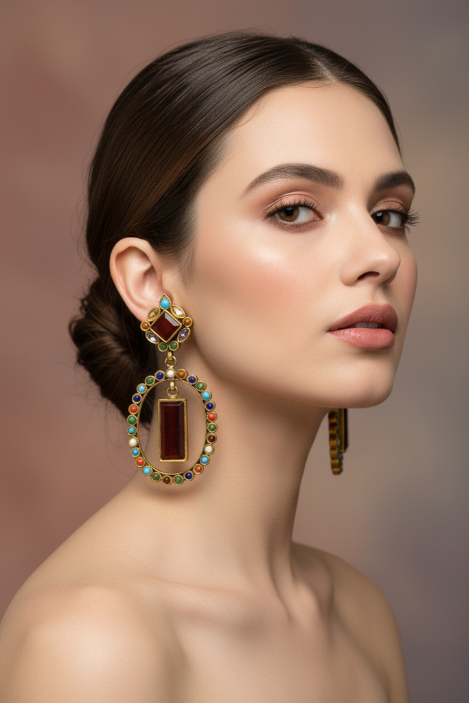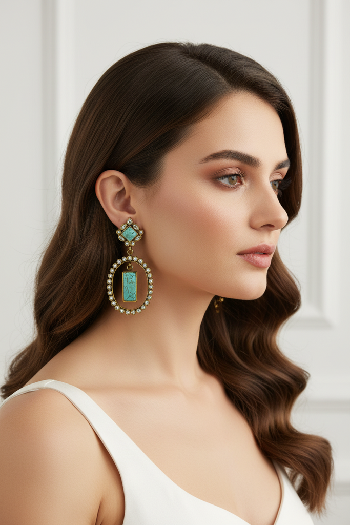 22k gold plated hand crafted kundun earrings studded with real stones.