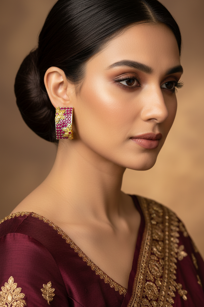 22k gold + rhodium plated high quality earrings studded with real stones.