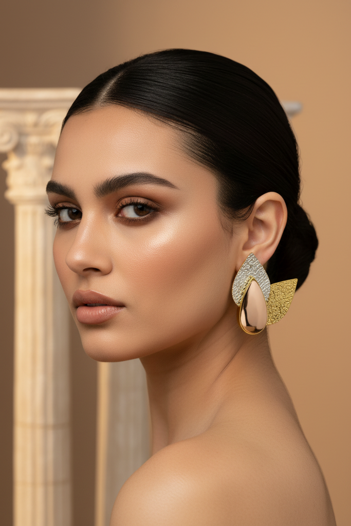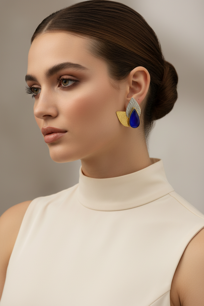 22k gold + rhodium plated hand crafted signature earrings studded with real stones.