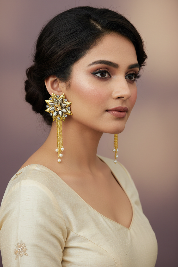 22k gold + rhodium plated hand crafted signature earrings studded with real stones.