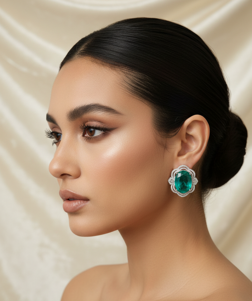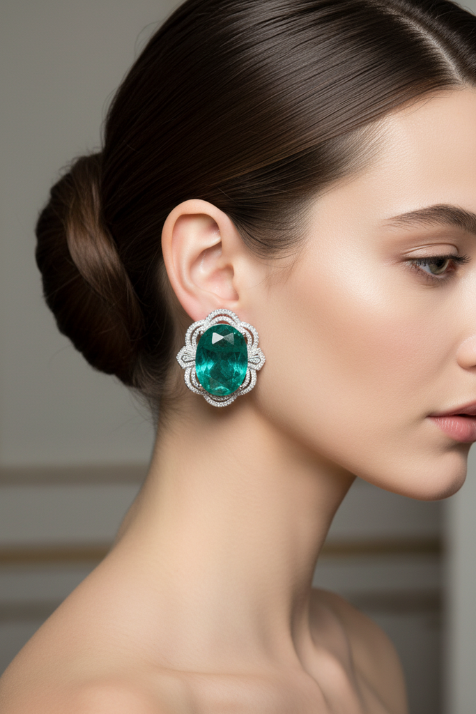 High quality rodhium plated very elegant earrings studded with real precious micro zircons and precious doublet Gilson stone