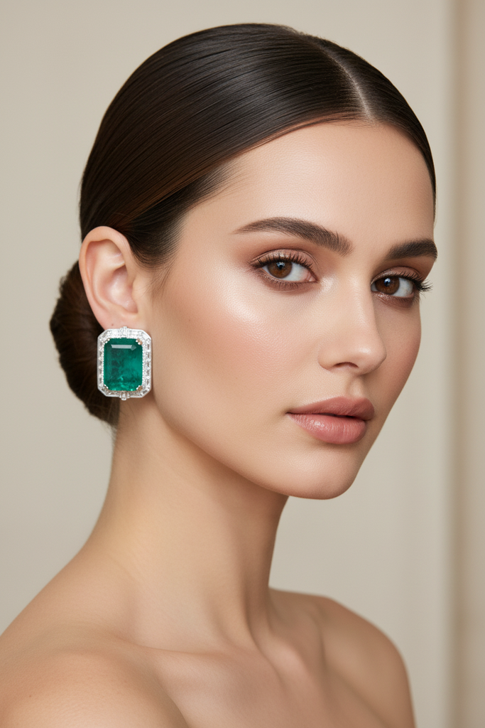 High quality rodhium plated double casted very classy earrings studded with real precious zircons and real doublet Gilson stone