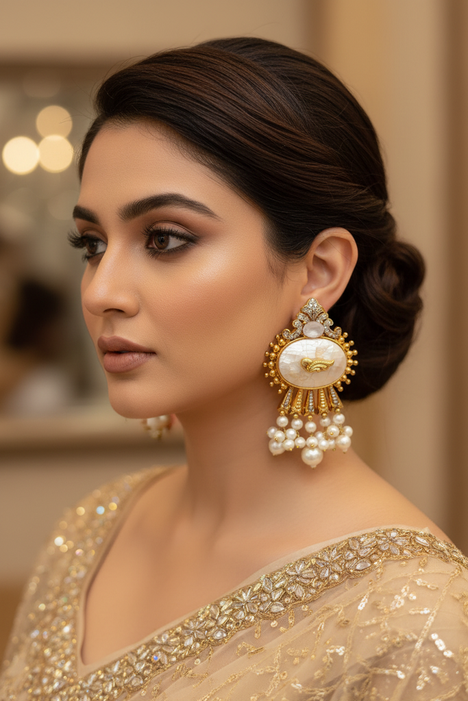 24k High Quality gold plated handmade Earrings studded with real precious zircons and opal stone. Premium quality👌