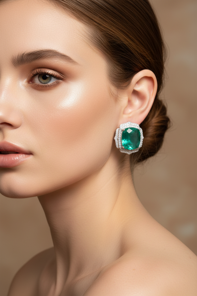 High quality very elegant earrings studded with real precious zircons and precious doublet gilson stone