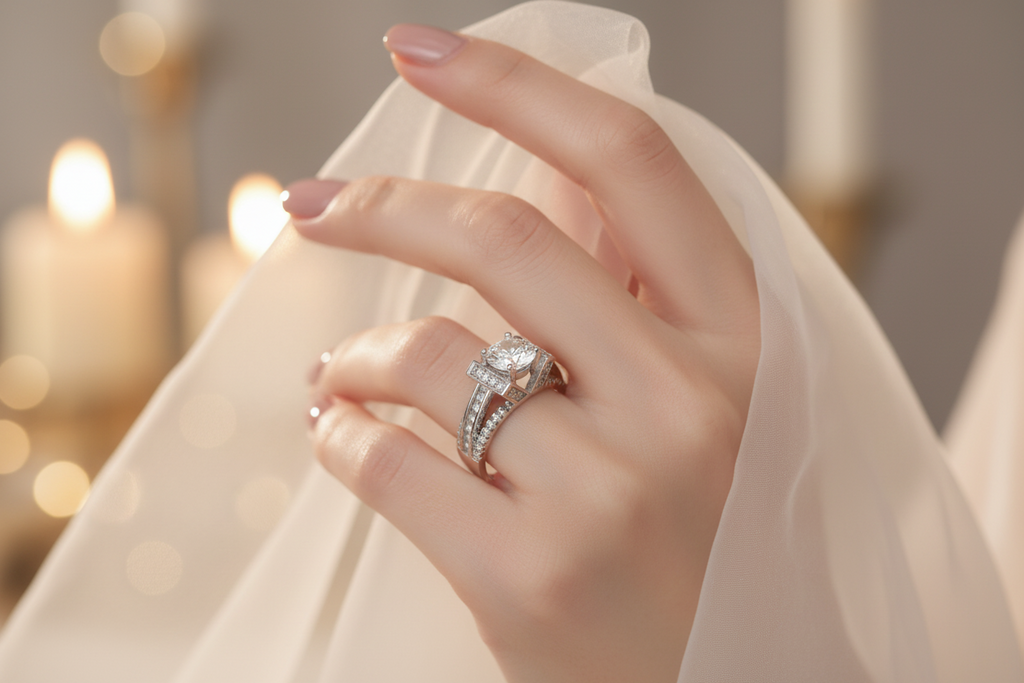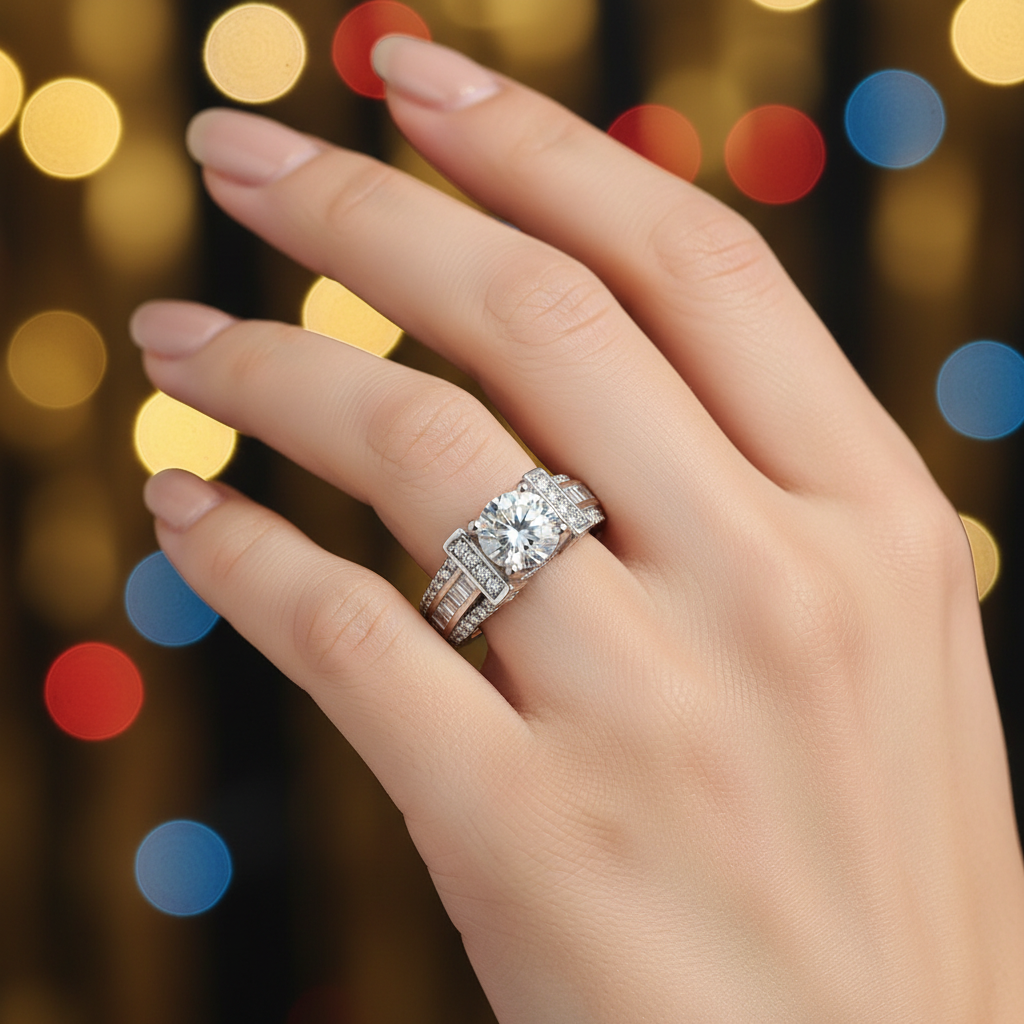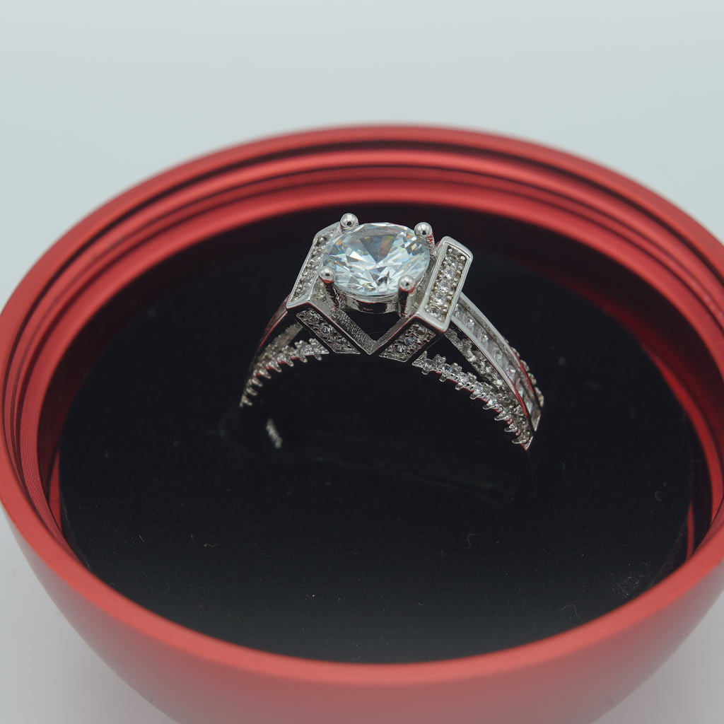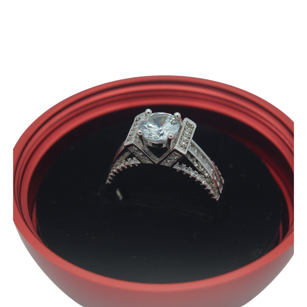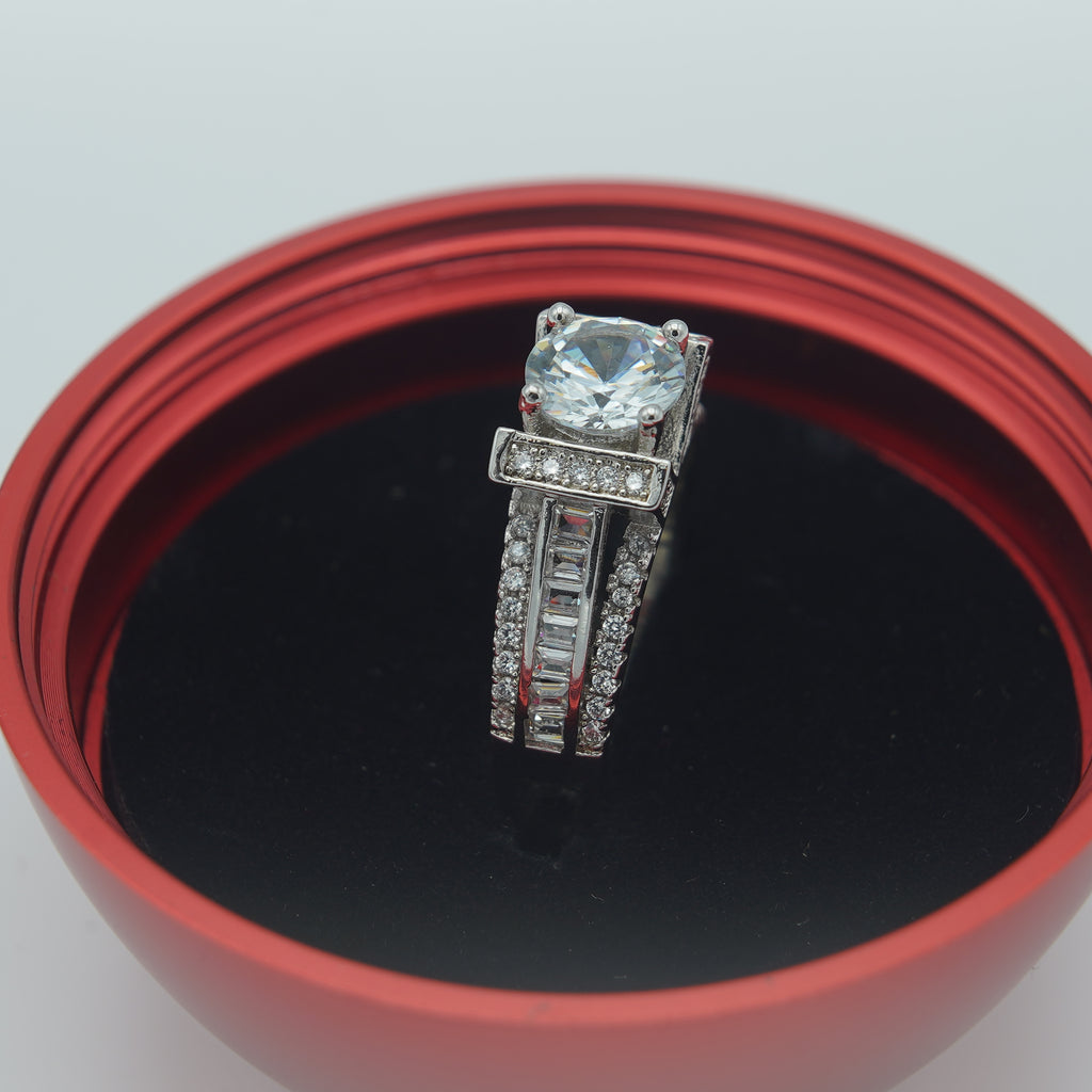 High quality rodhium plated premium quality ring studded with real precious zircons and real stones