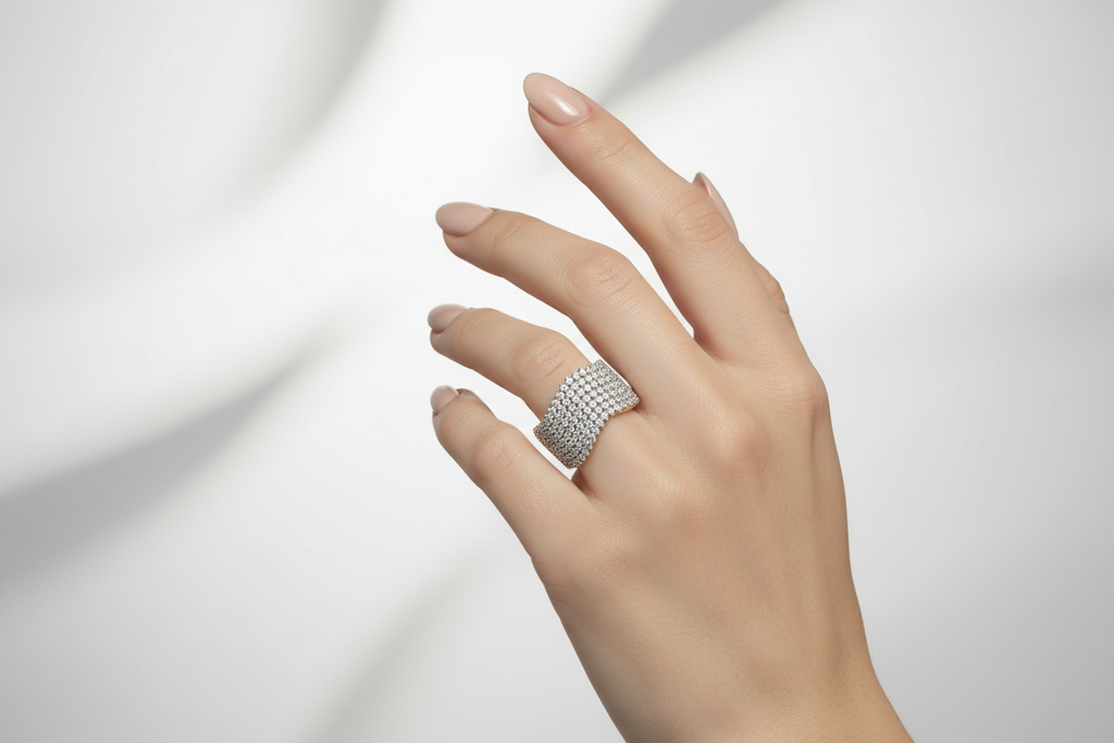 22k gold plated + rodhium plated adjustable ring studded with precious micro zircons