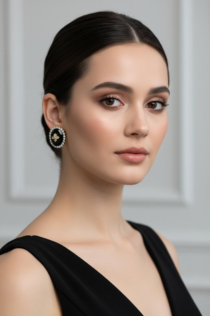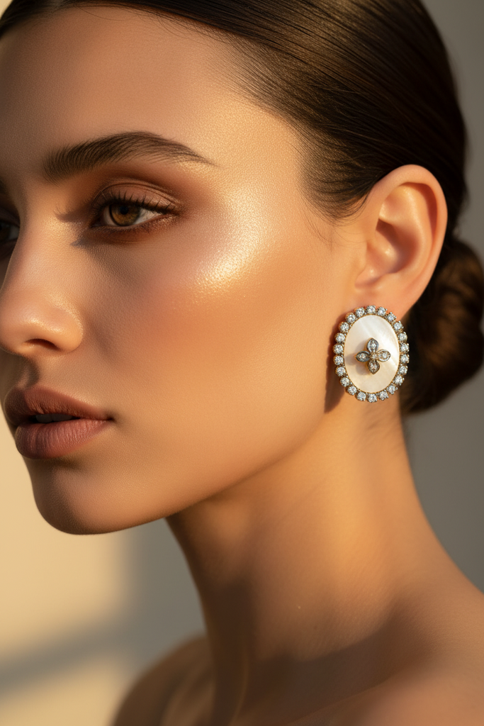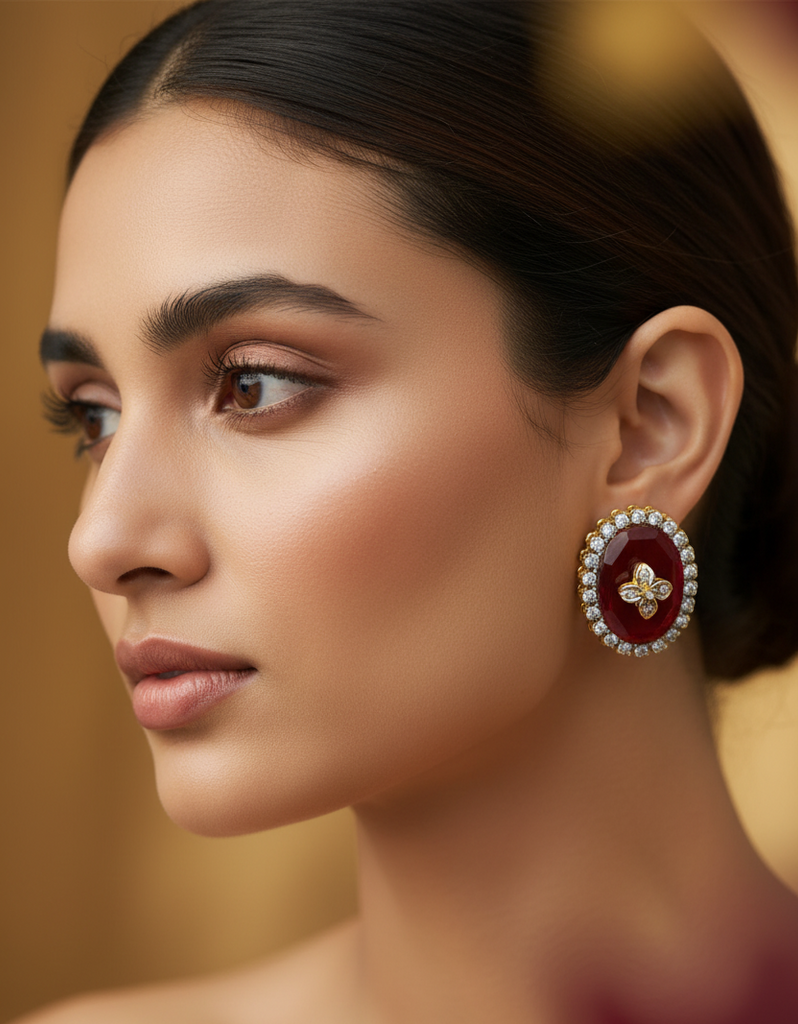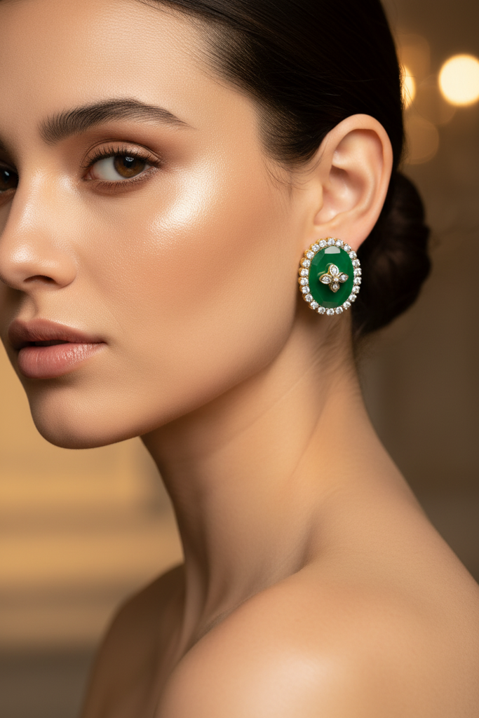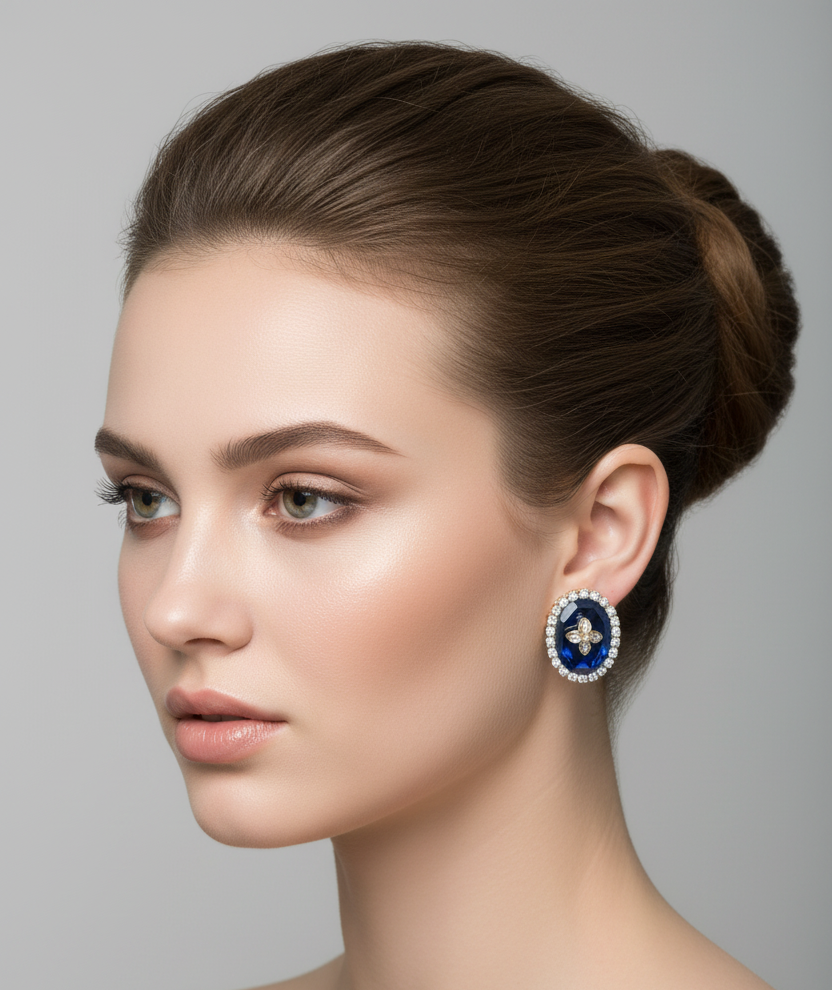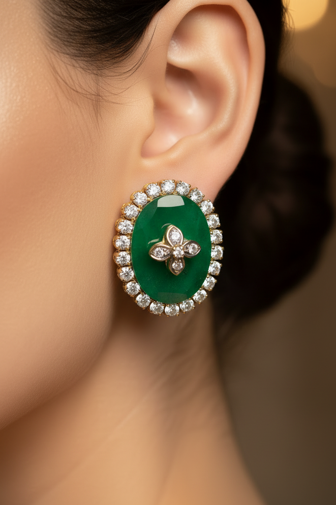 22k gold plated+ rodhium plated premium quality ear studs studded with real precious zircons and semi precious stones