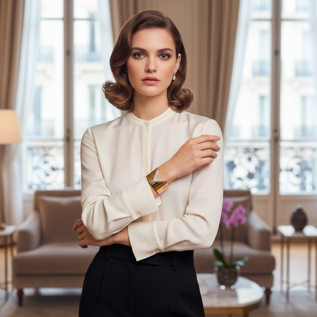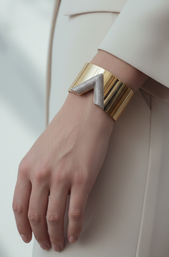 High quality gold plated very beautiful and stunning bangle by LOUIS VUITTON studded with real precious micro zircons. Premium quality👍