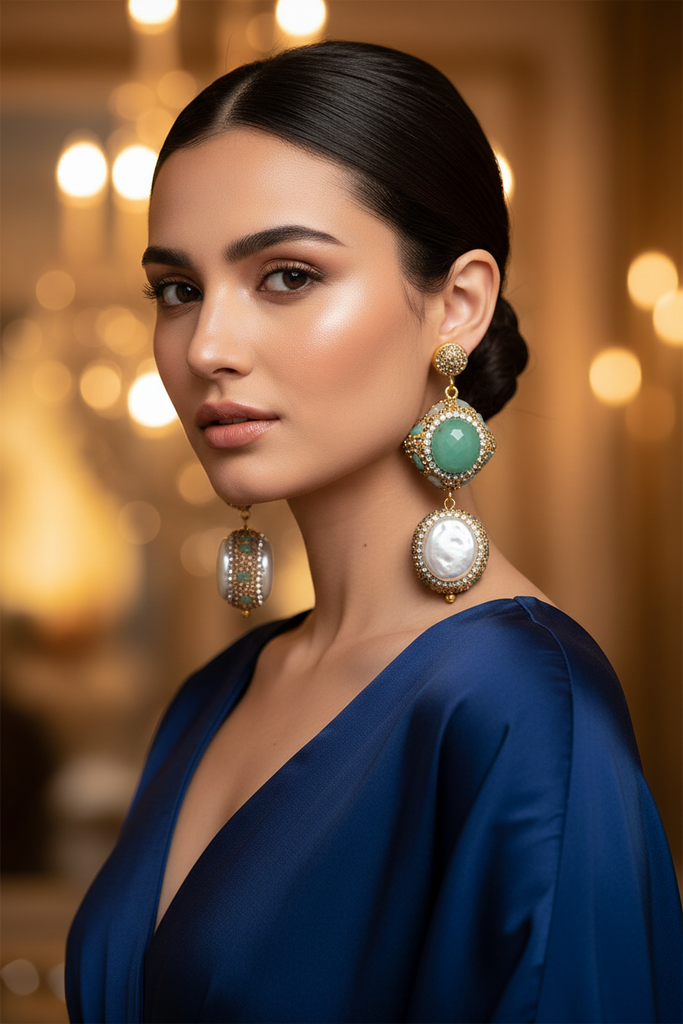 High quality gold plated very beautiful and elegant Turkish🇹🇷 earrings studded with real  stones  and real Swarovski stones. Premium Quality👌