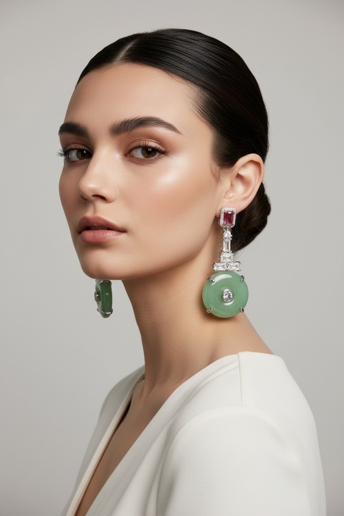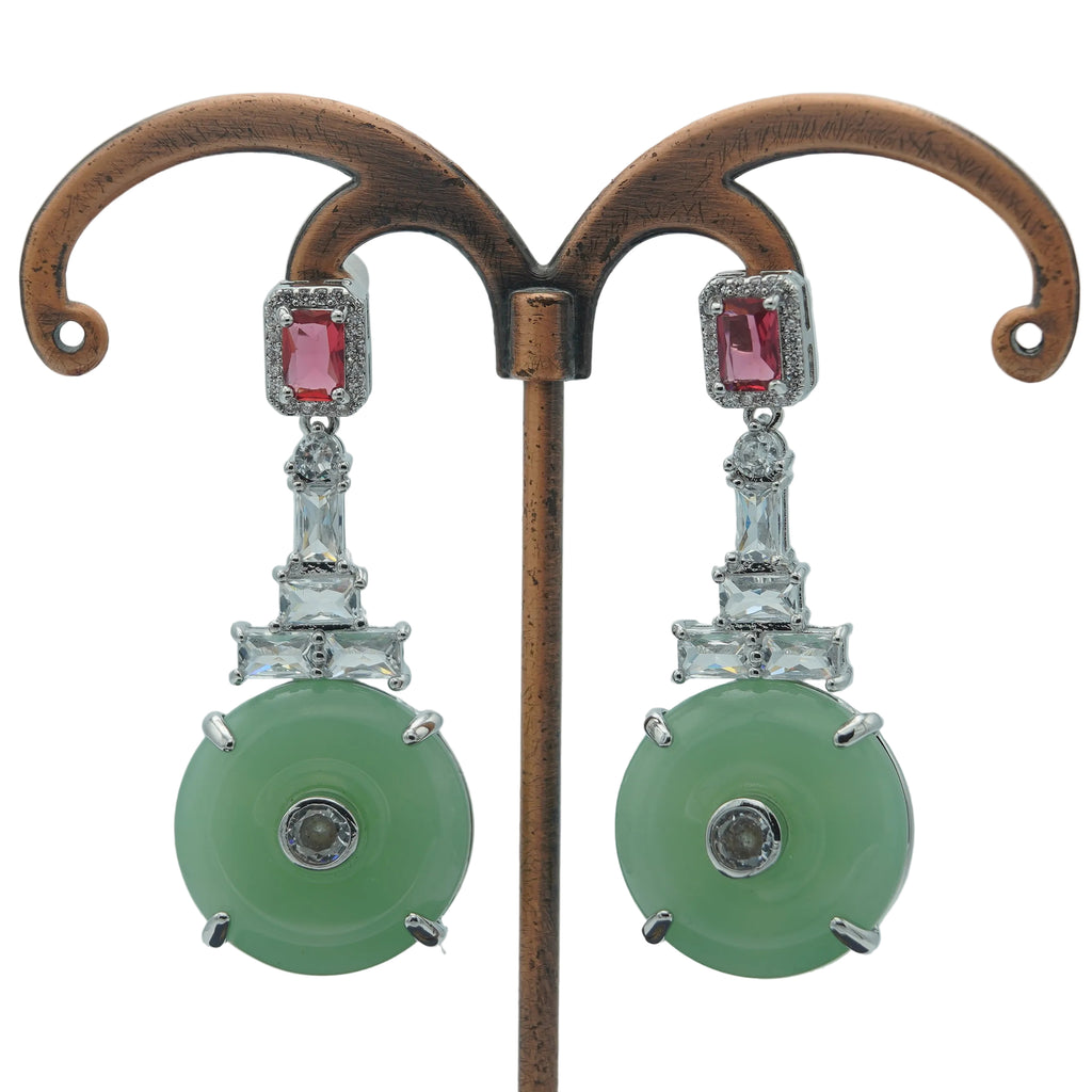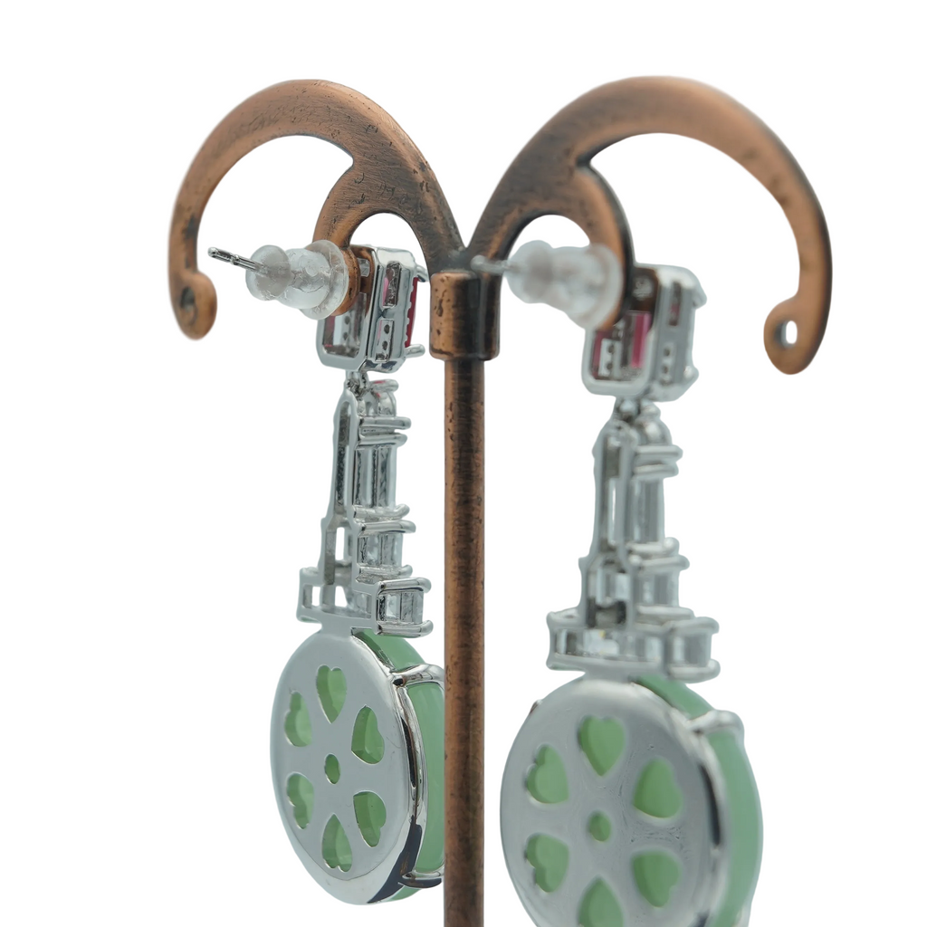 High quality rodhium plated premium quality real BVLGARI signature earrings studded with real precious zircons and real stones