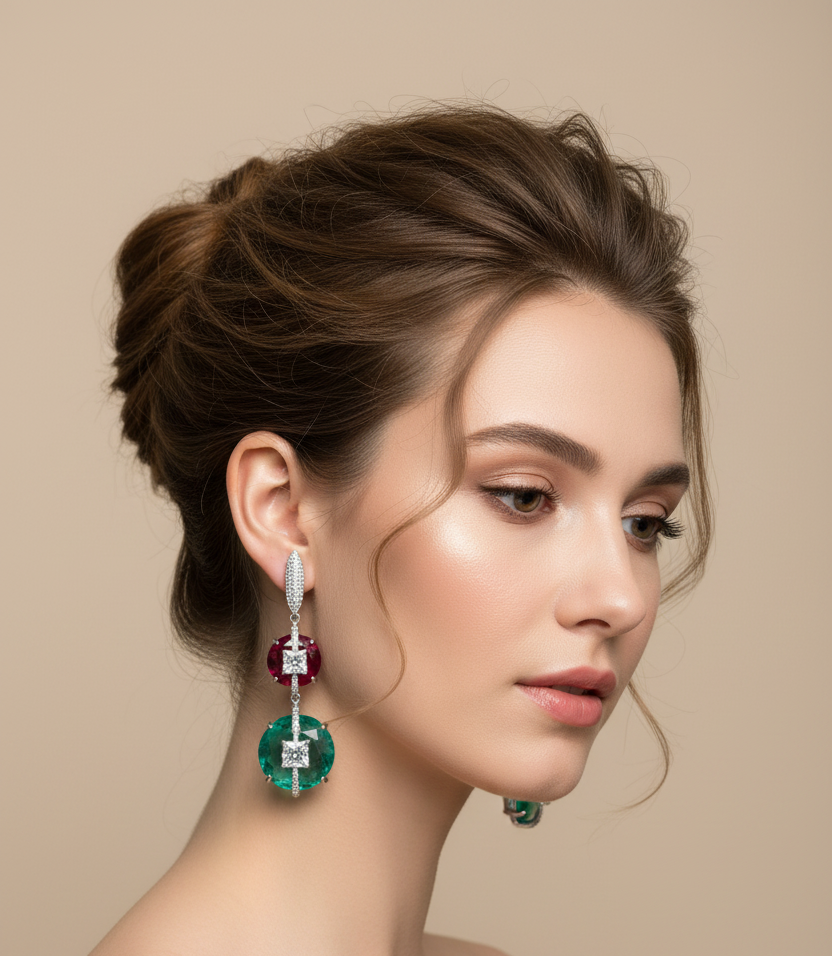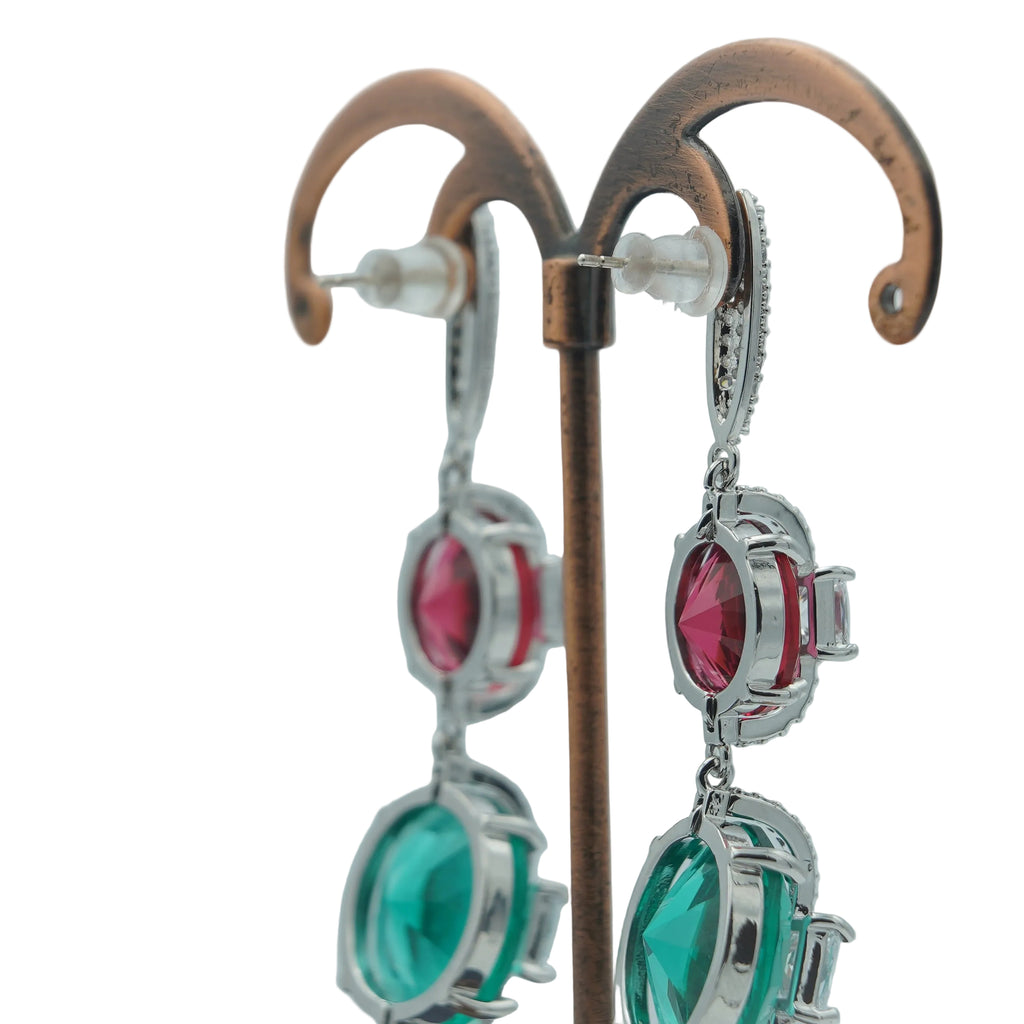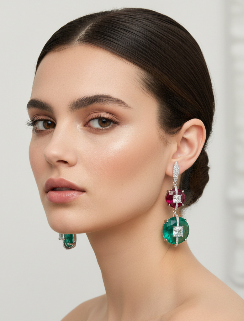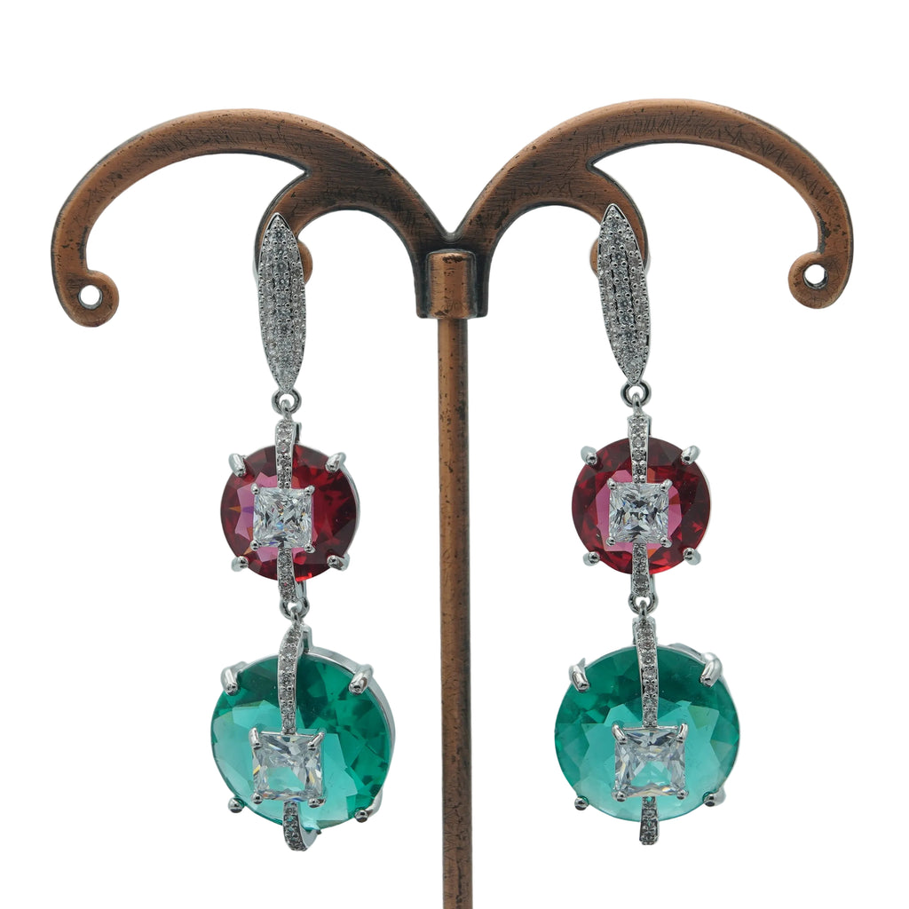 High quality rodhium plated premium quality real BVLGARI signature earrings studded with real precious zircons and stones