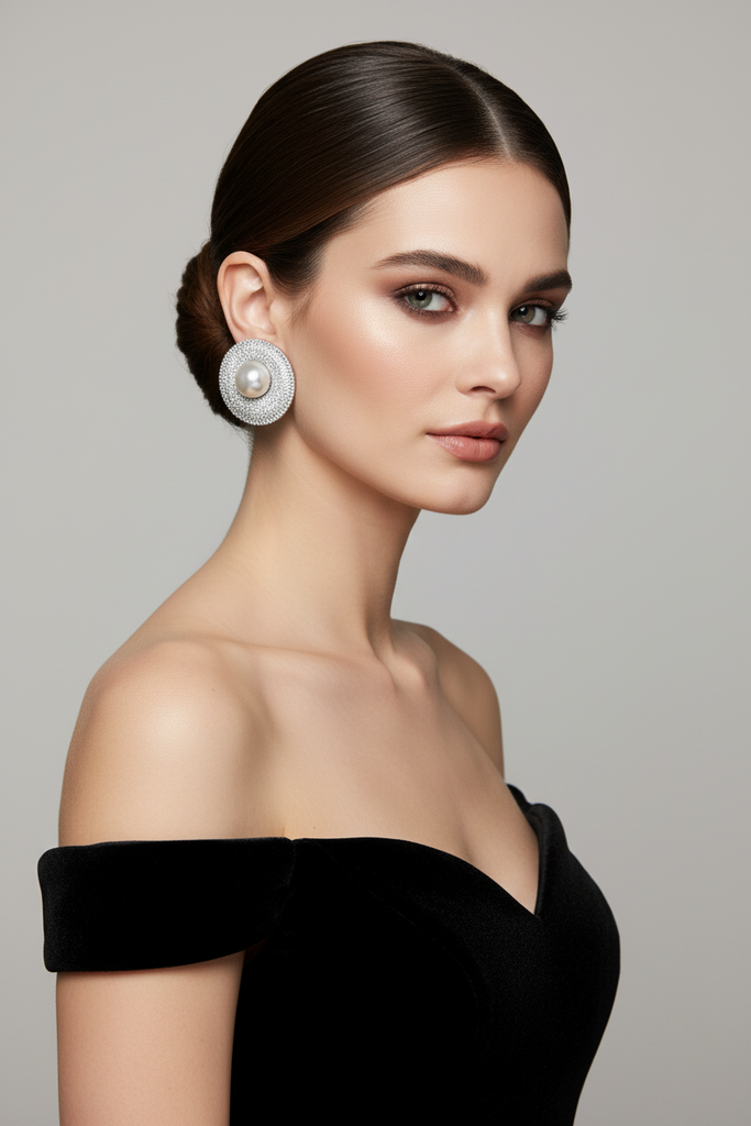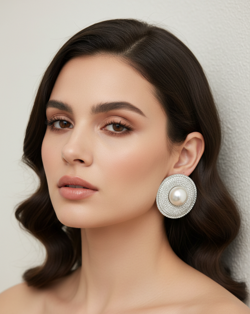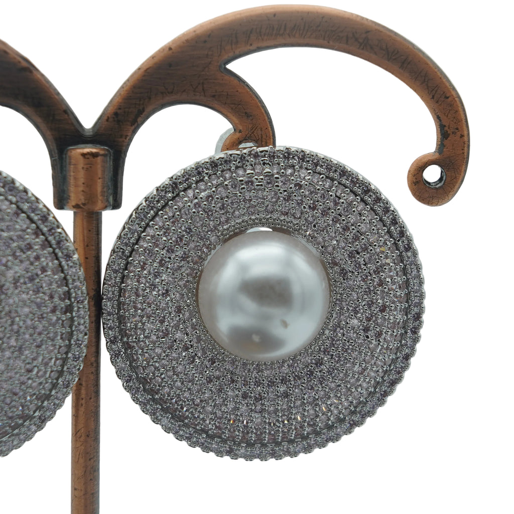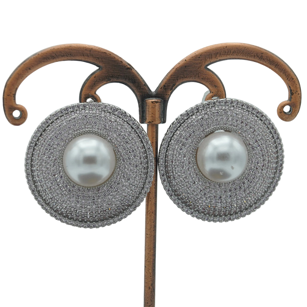High quality rodhium plated premium quality real BVLGARI signature earrings studded with real precious micro zircons pearls