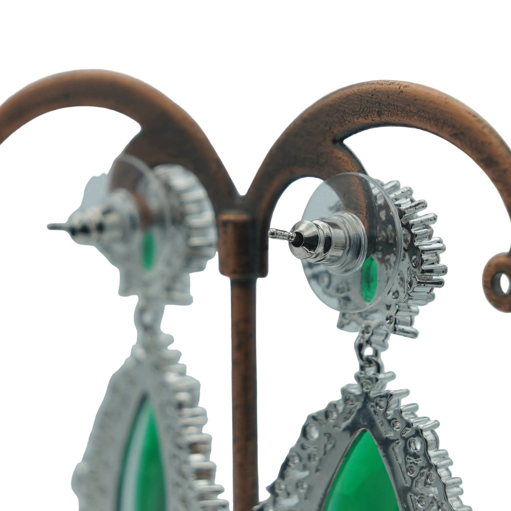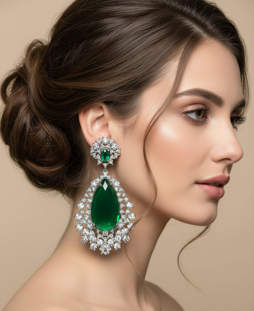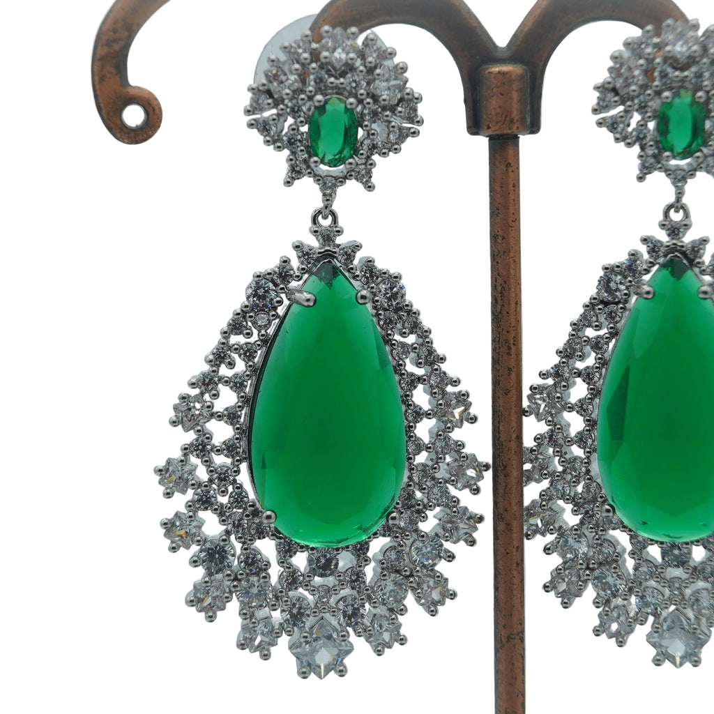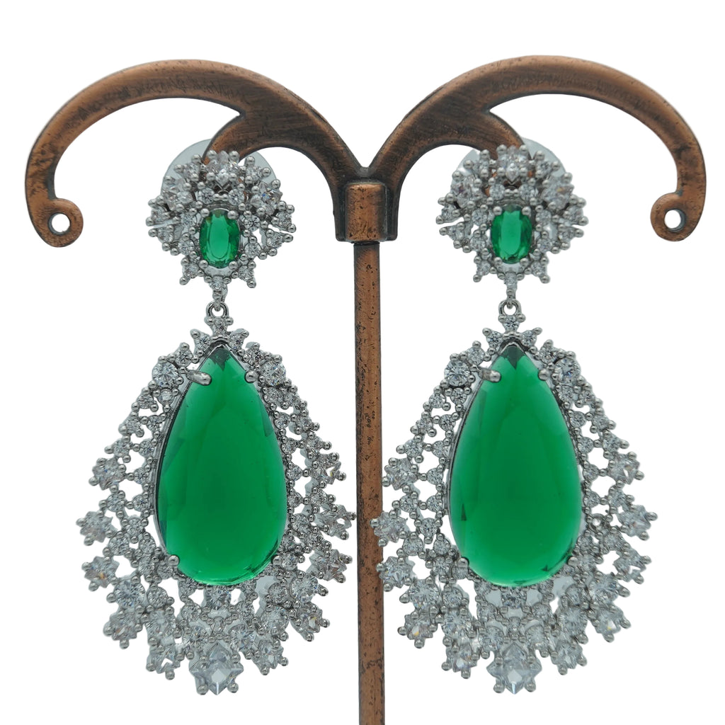 High quality rodhium plated premium quality 925 sterling silver earrings studded with real precious zircons and precious stones