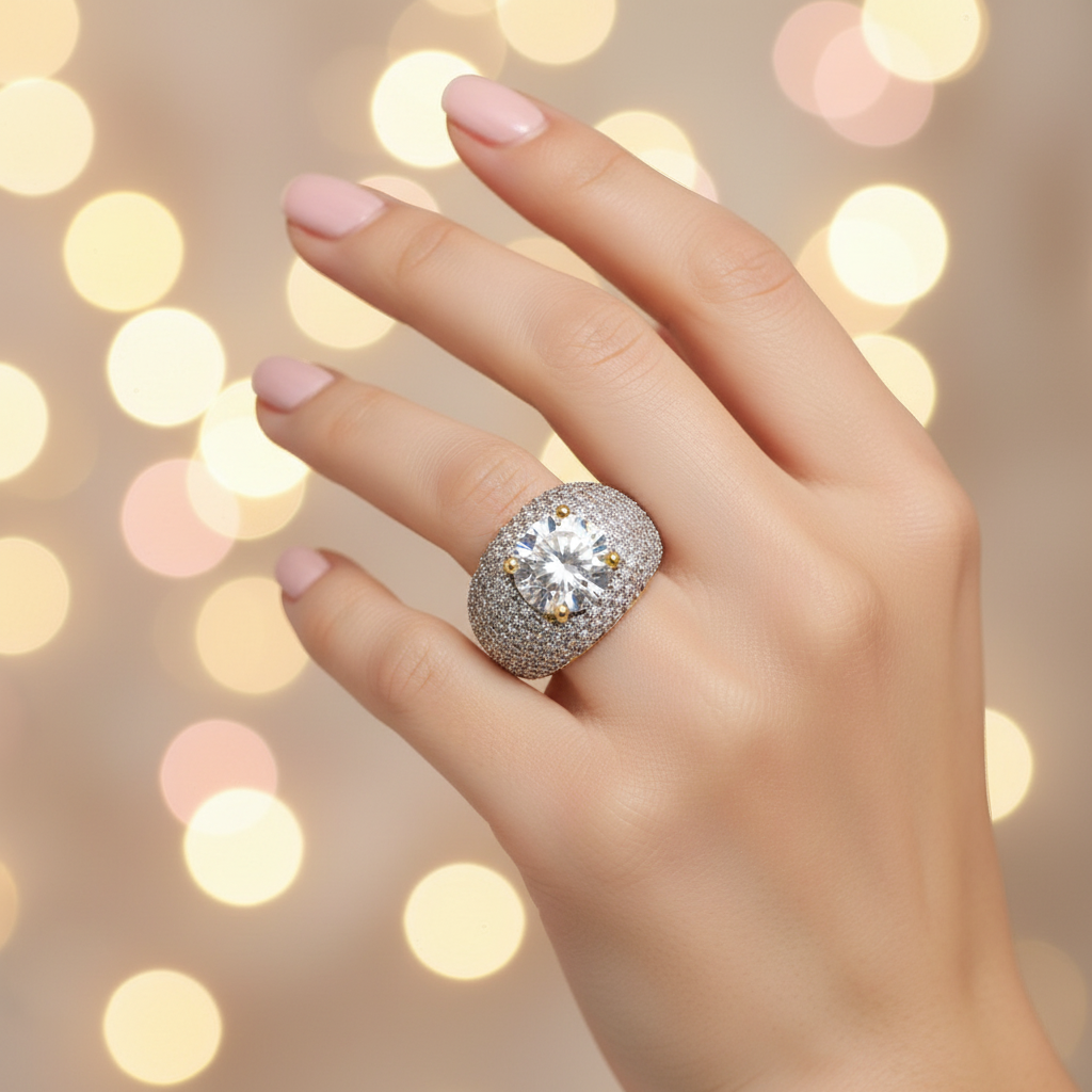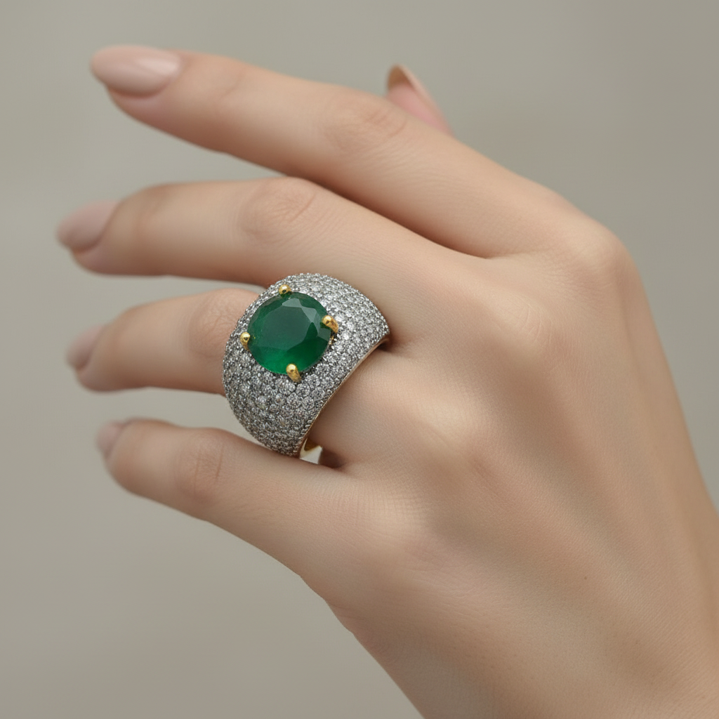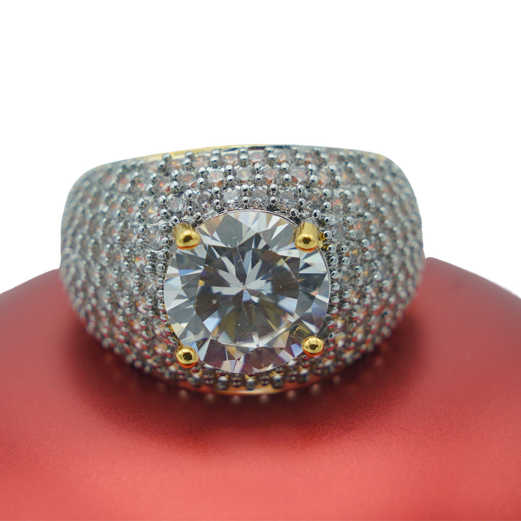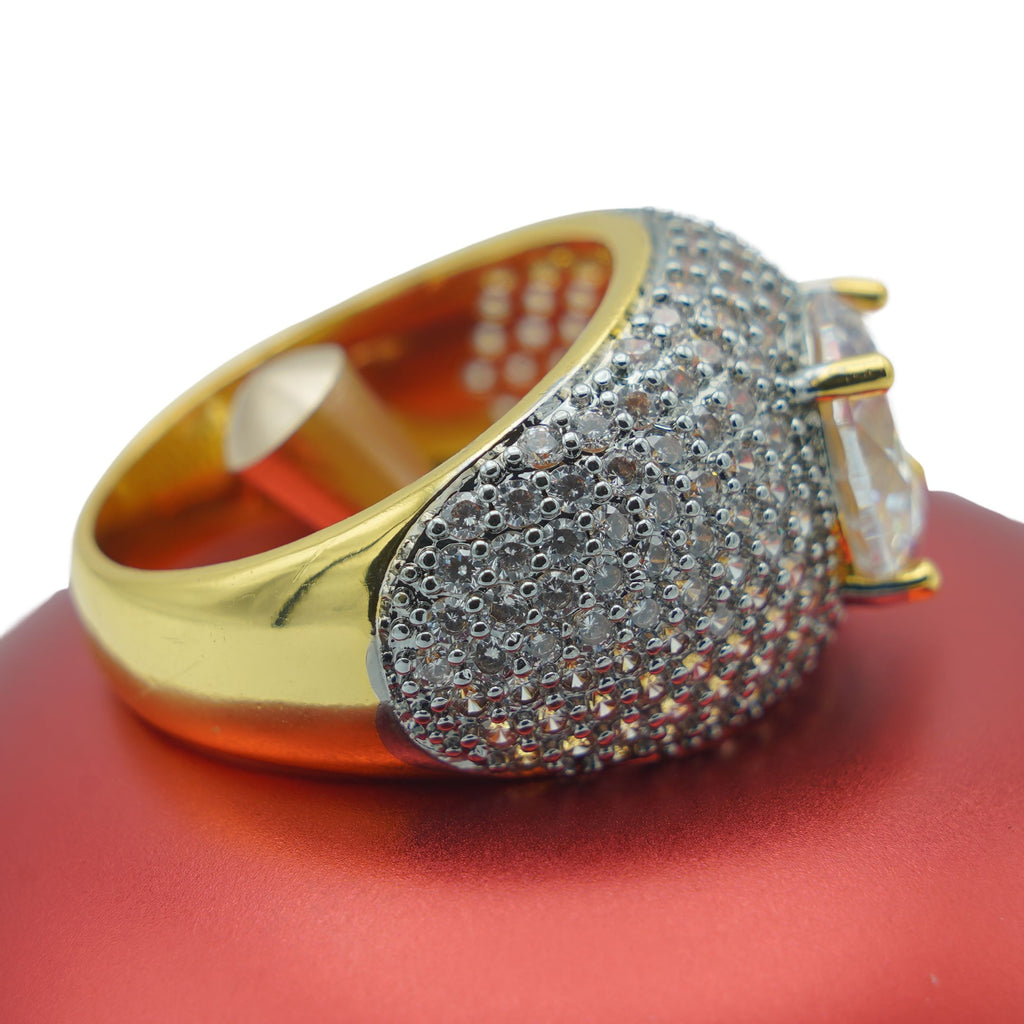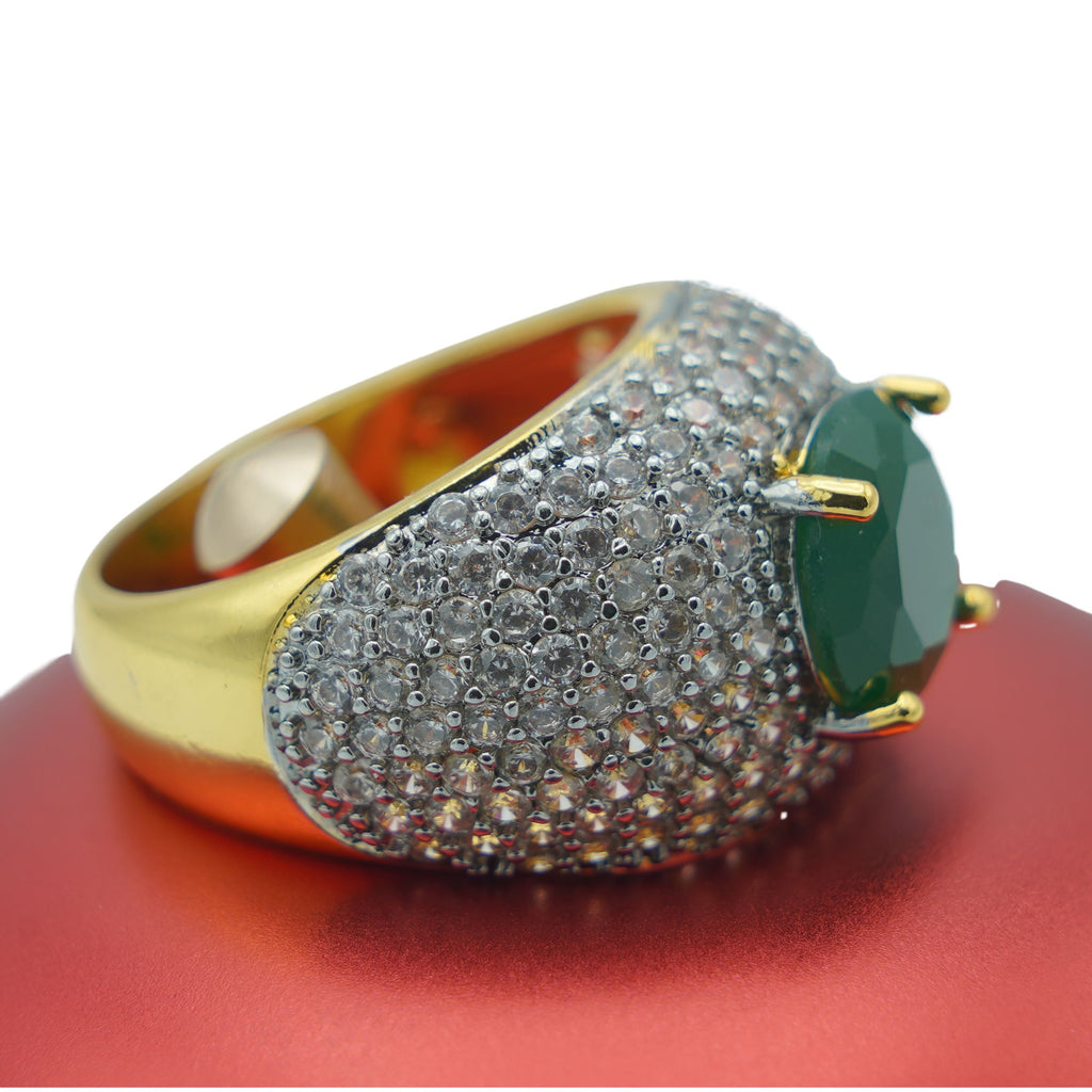 22k gold plated and rodhium premium quality ring studded with real precious zircons and real stones