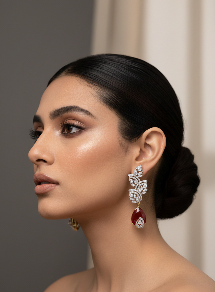 22k gold + rhodium plated very elegant earrings studded with precious zircons and stones.