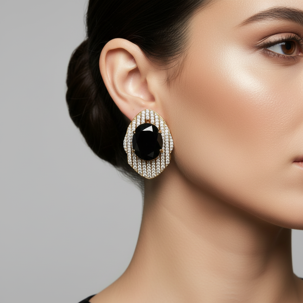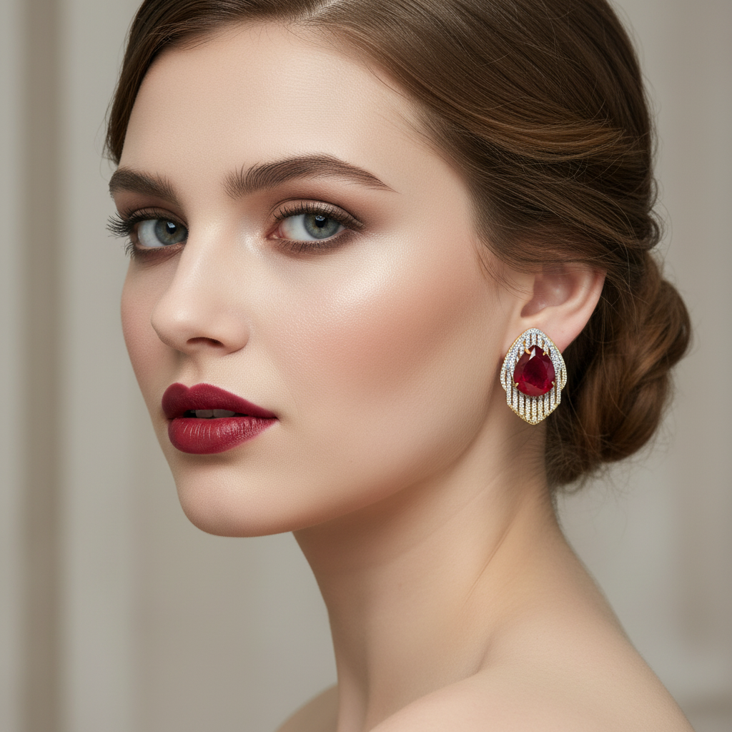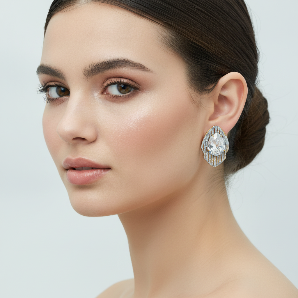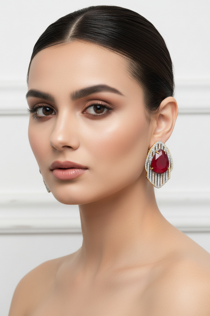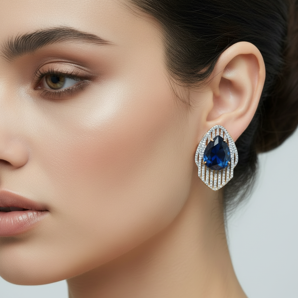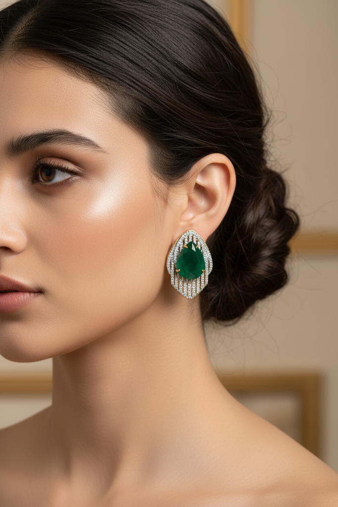22k gold plated+ rodhium plated premium quality earrings studded with real precious zircons and real stones