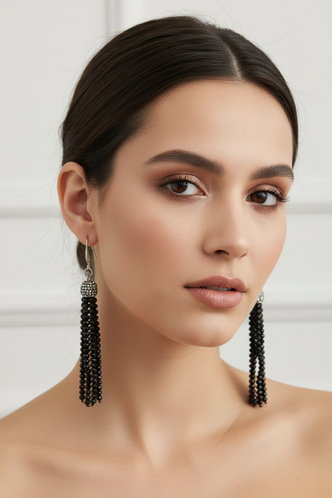 High quality smoky earrings studded with seep and Swarovski's and real beads.