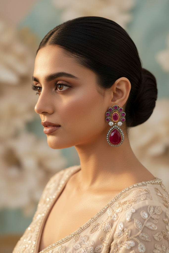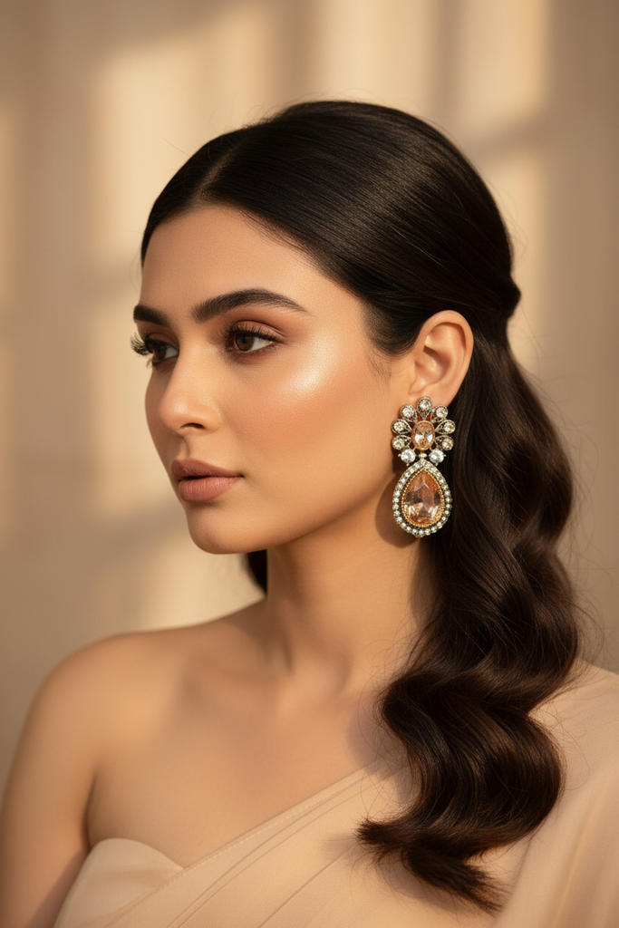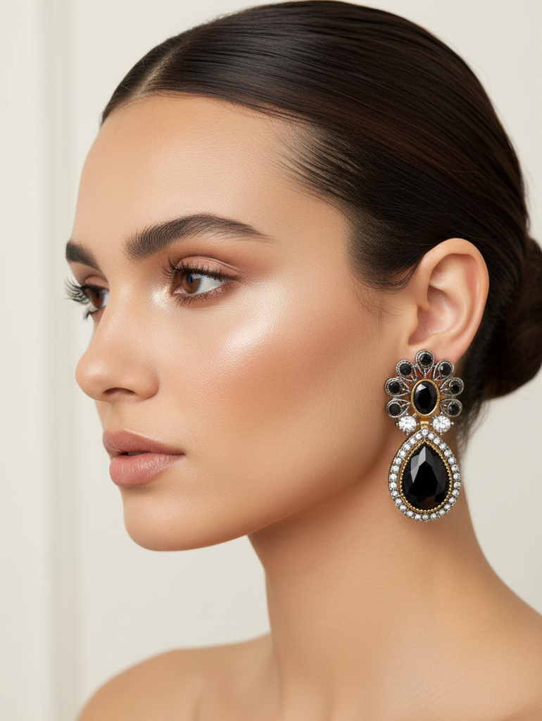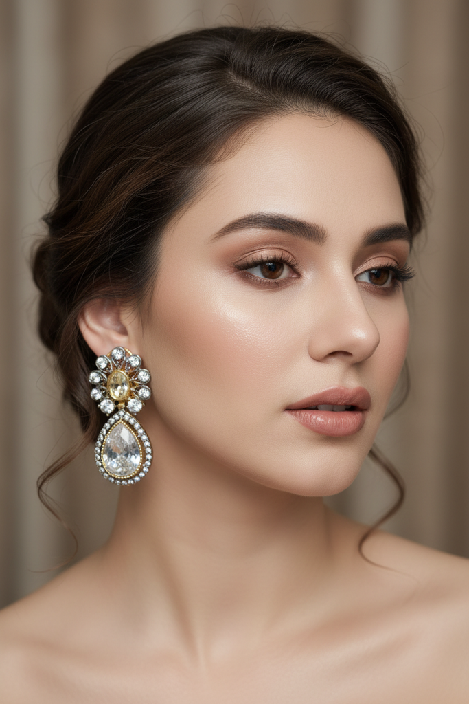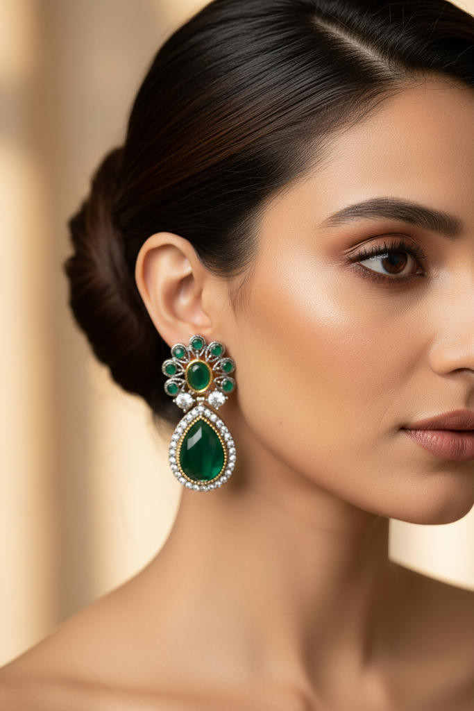 22k gold and rodhium plated elegant earrings studded with real precious zircons and real stones very beautiful❤😍