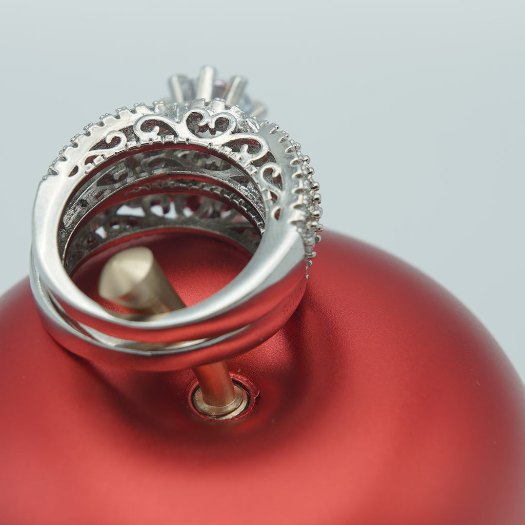 High quality rodhium plated double ring solitaire style studded with real precious zircons