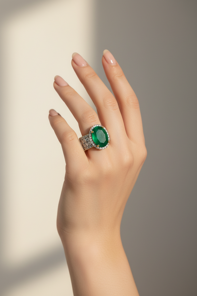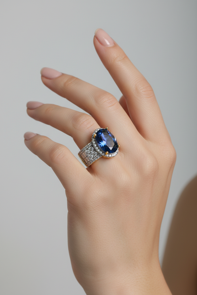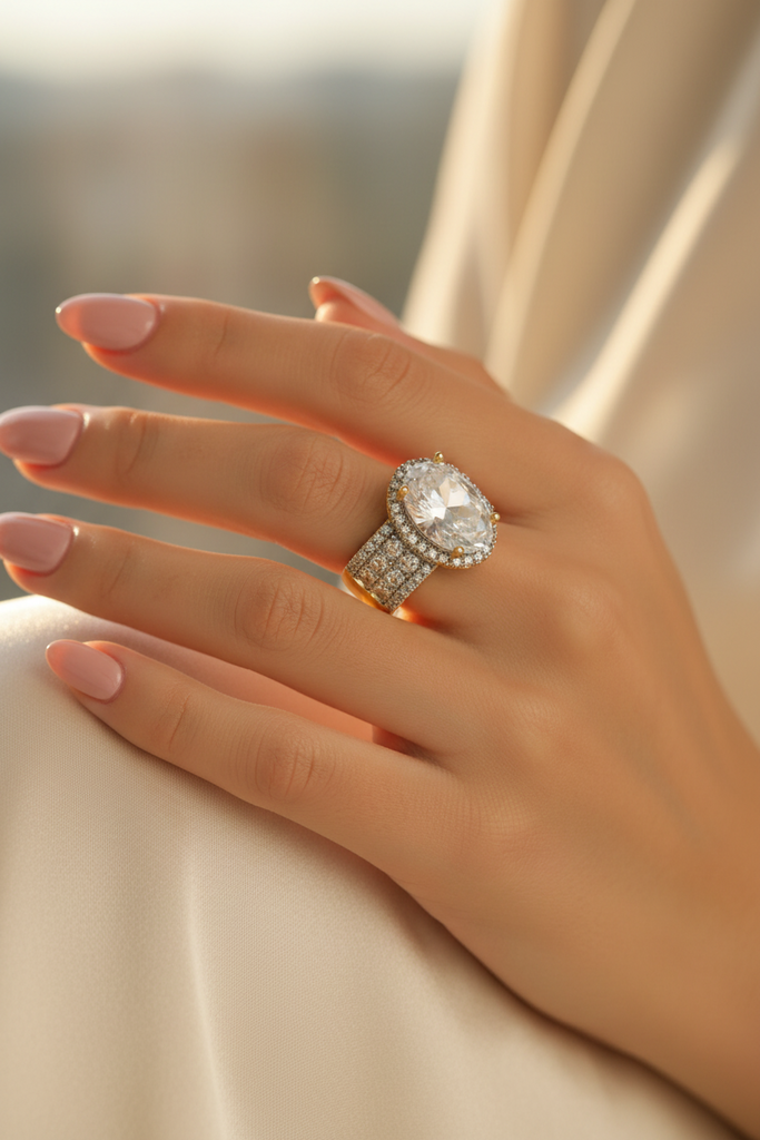 22k gold plated+ rhodium plated premium quality   ring studded with real precious zircons and real premium quality oval shaped stones.👍
