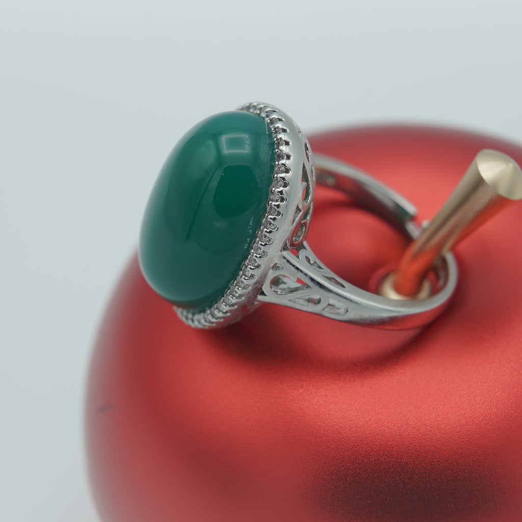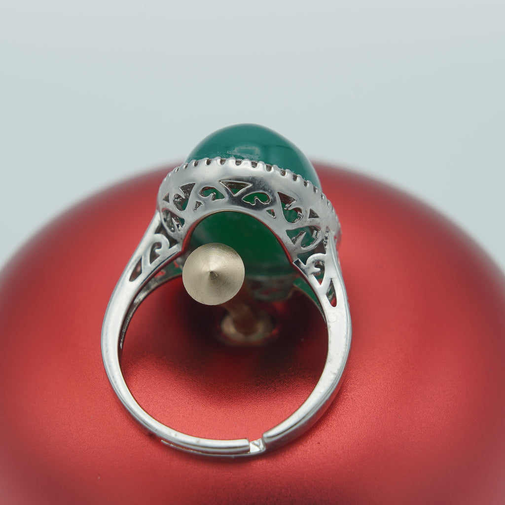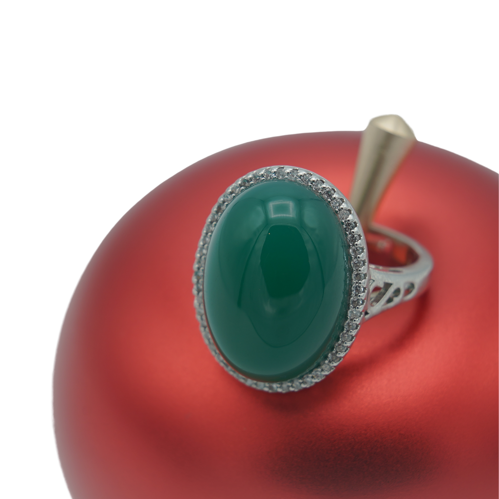 High quality rodhium plated double casted ring Italian ring studded with real precious zircons and real Panna stone
