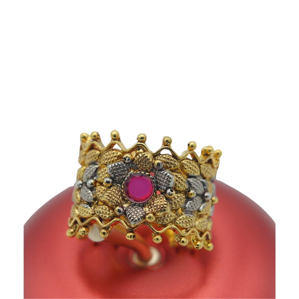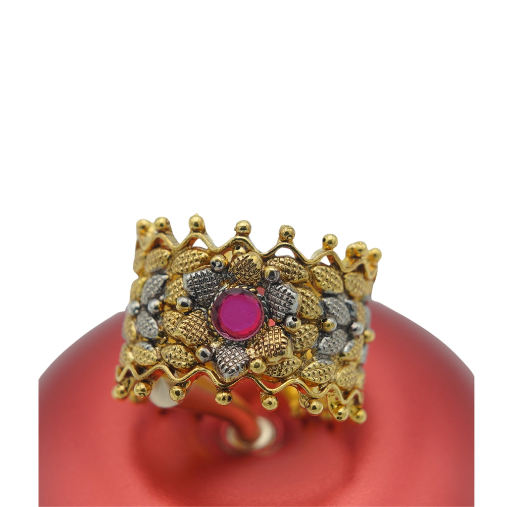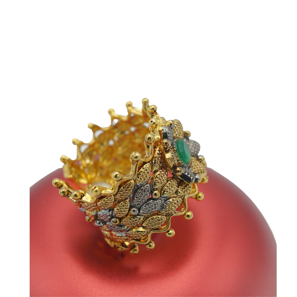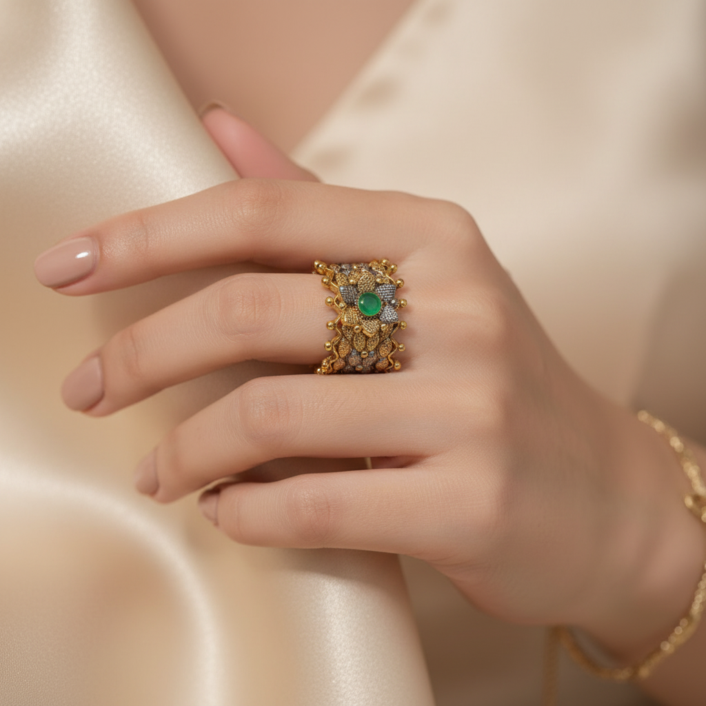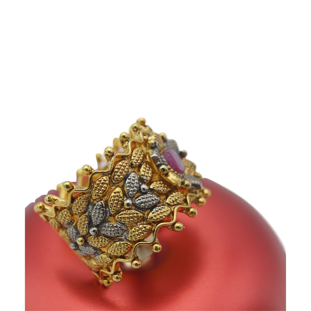 22k gold plated and rodhium hand crafted adjustable band(ring) studded with real stones