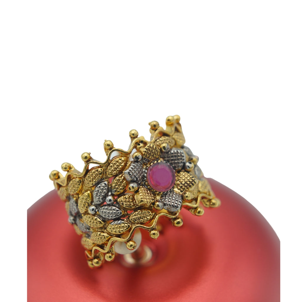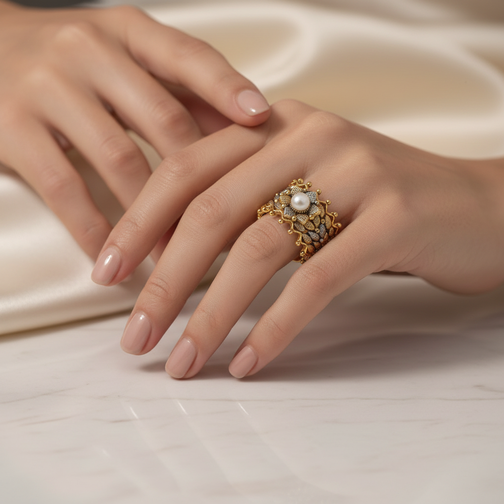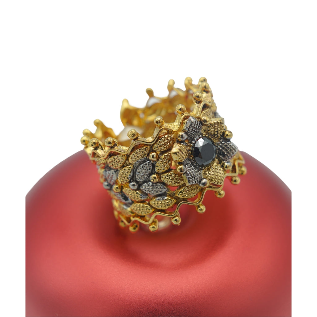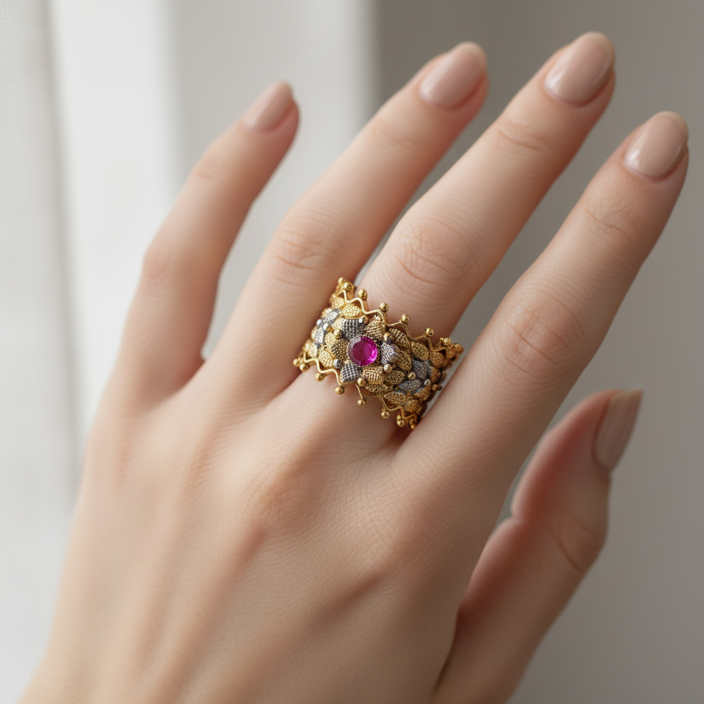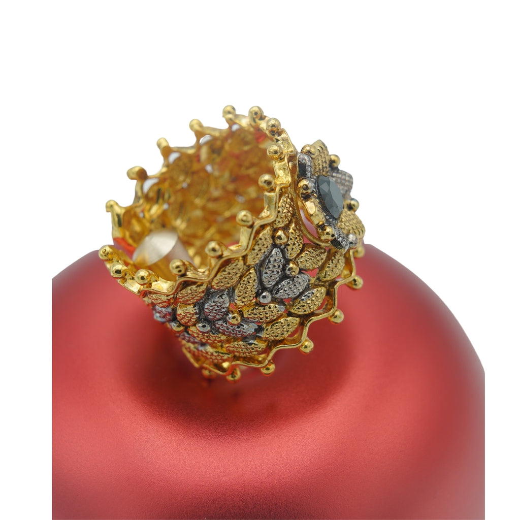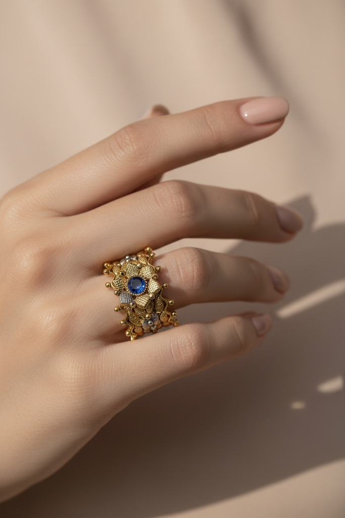 22k gold plated and rodhium hand crafted adjustable band(ring) studded with real stones