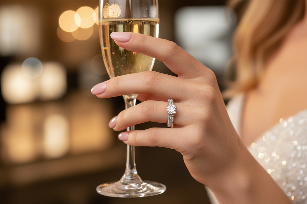 High quality rodhium plated premium ring studded with real precious zircons and real stones
