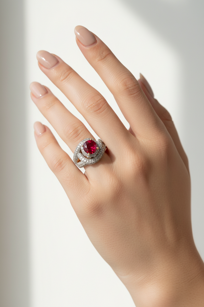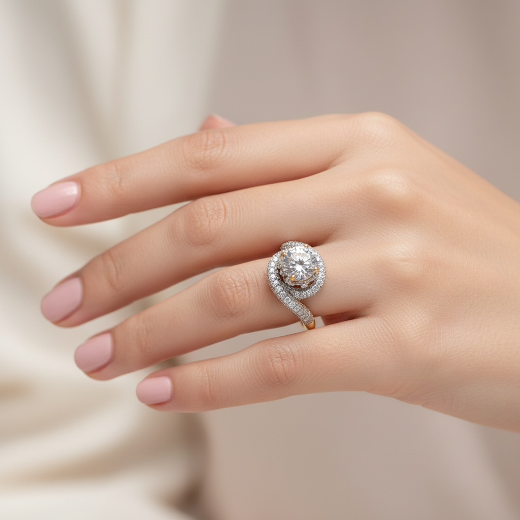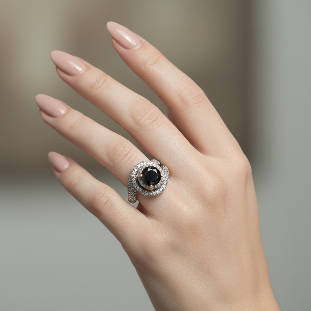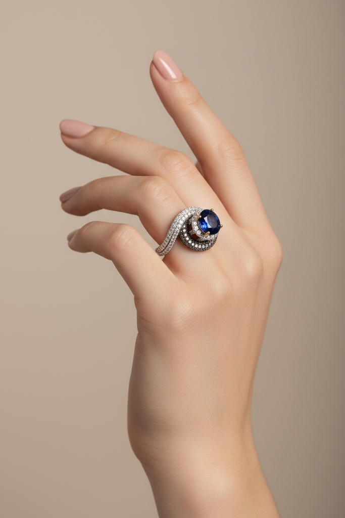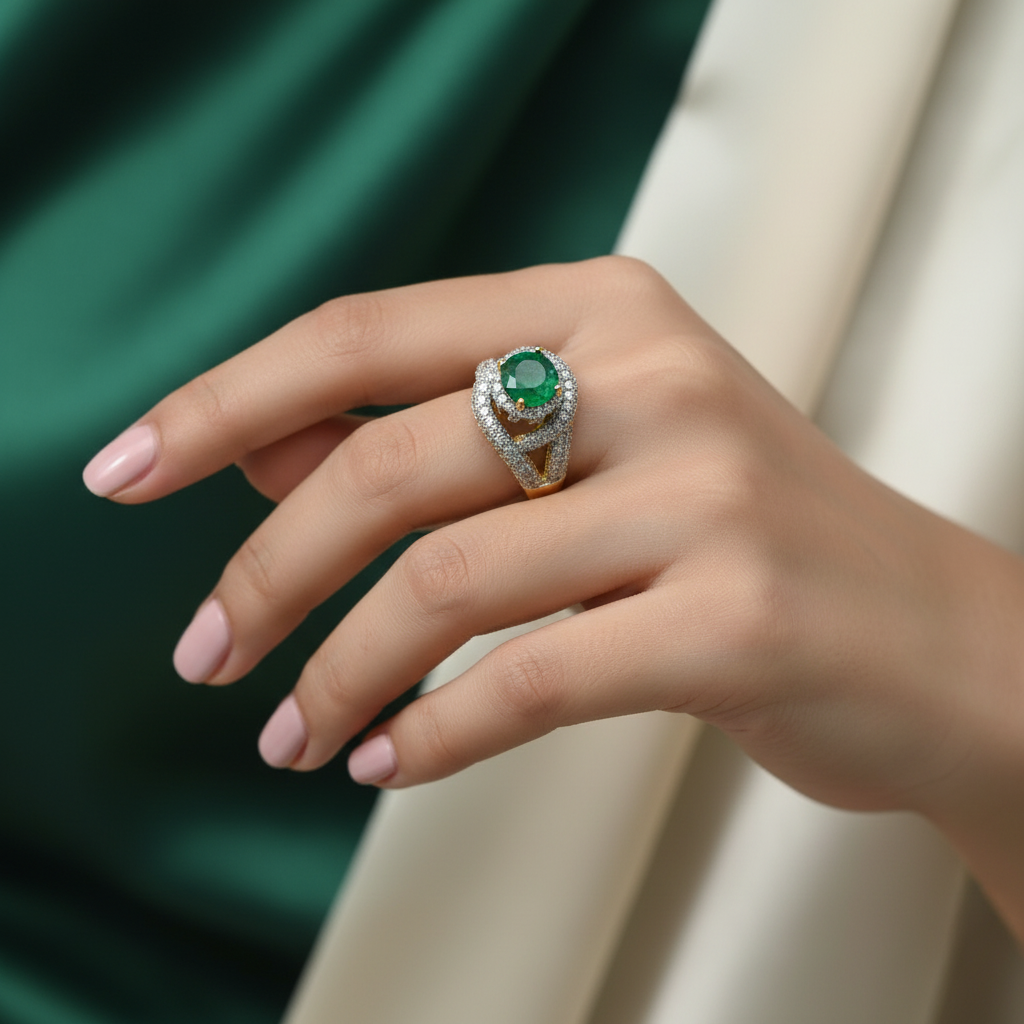 22k gold plated and rodhium plated diamond💎 design very beautiful ring studded with real precious zircons and real stones.