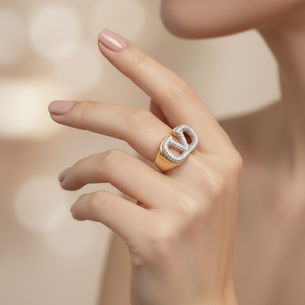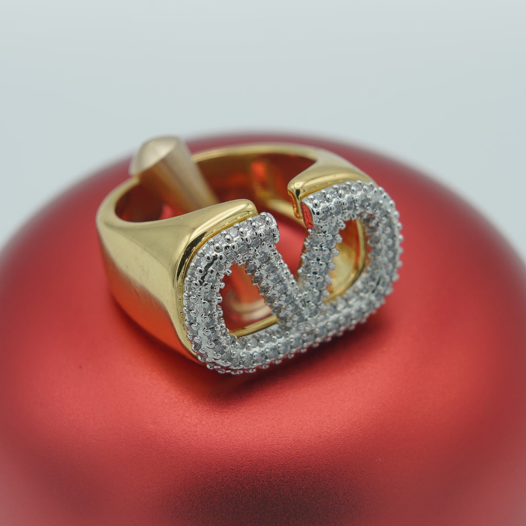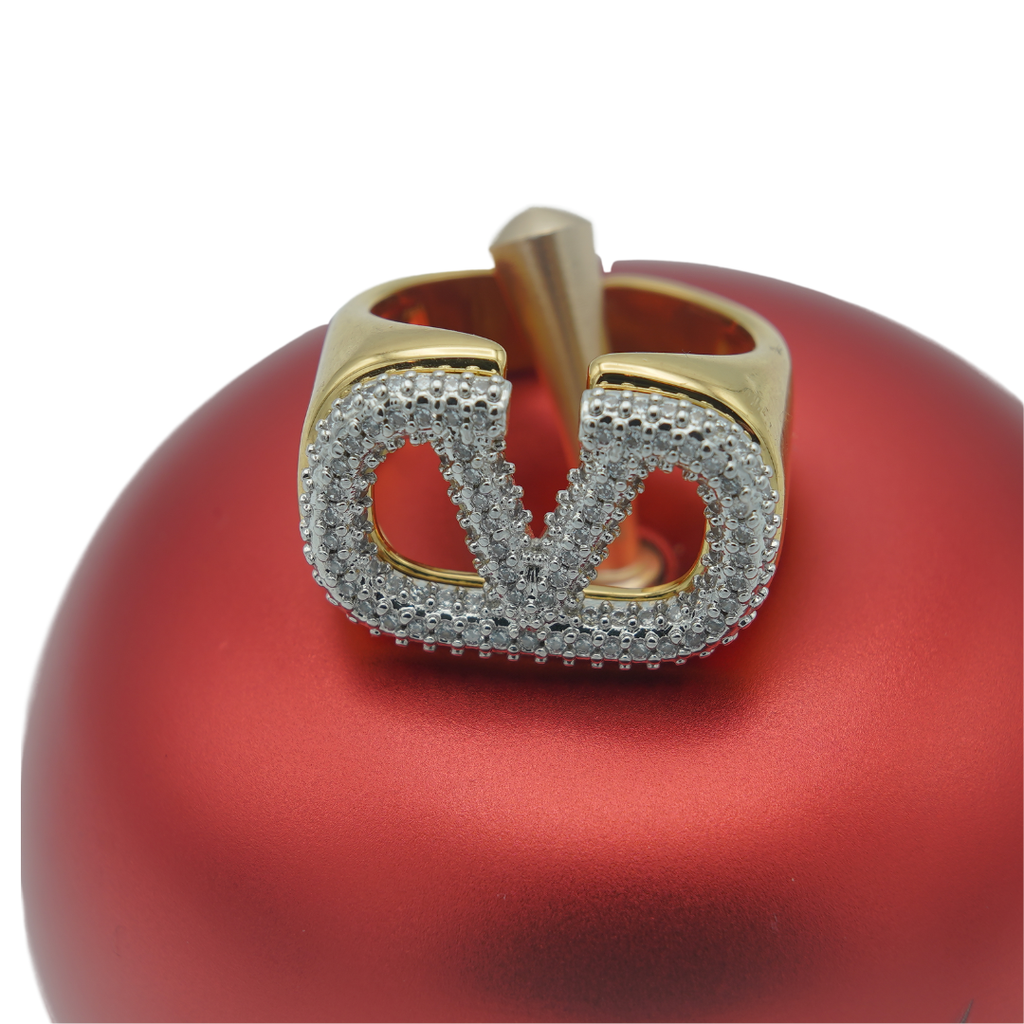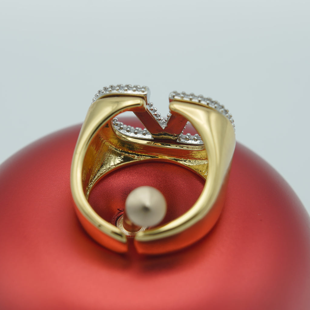 High quality gold plated and rodhium plated premium quality(LV) Lious Viton ring studded with real precious zircons